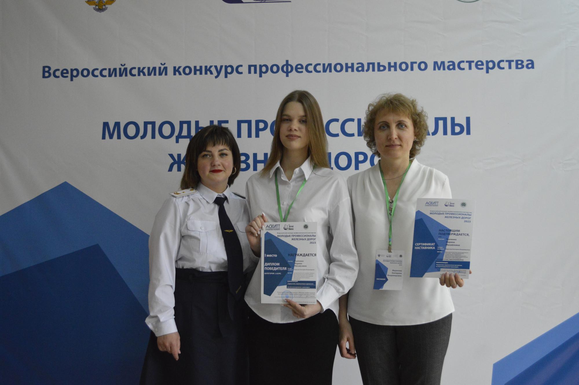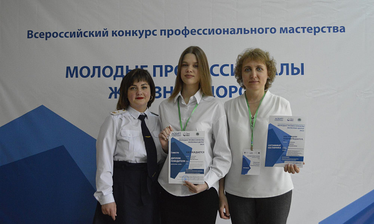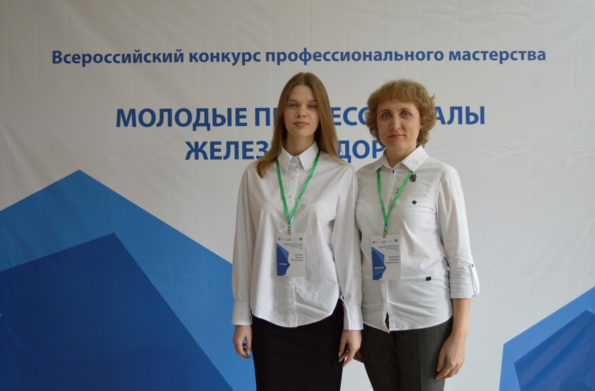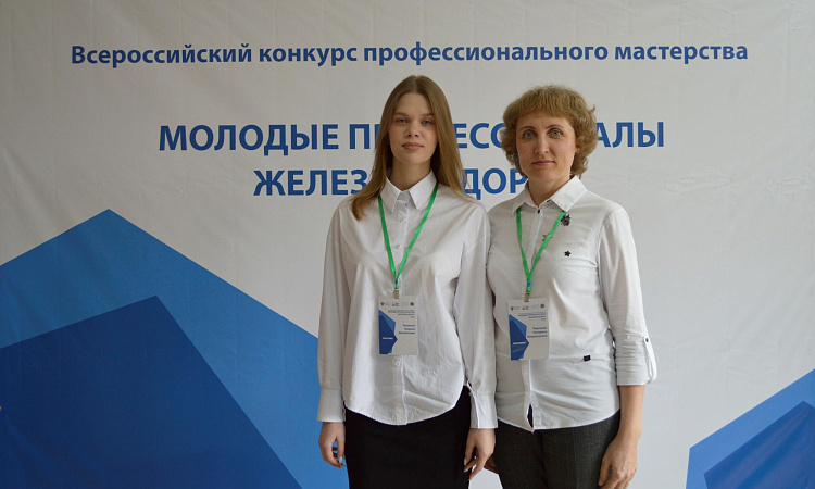 Команду Красноярского техникума железнодорожного транспорта КрИЖТ ИрГУПС представляли Марина Ткаченко (конкурсант) студентка 4 курса группы Д.9-19-2 и Екатерина Мерилова (эксперт-наставник) преподаватель.