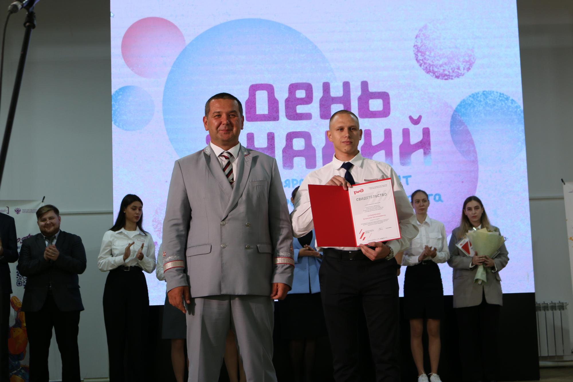 Все студенты получили награду из рук начальника Красноярской железной дороги Алексея Туманина.