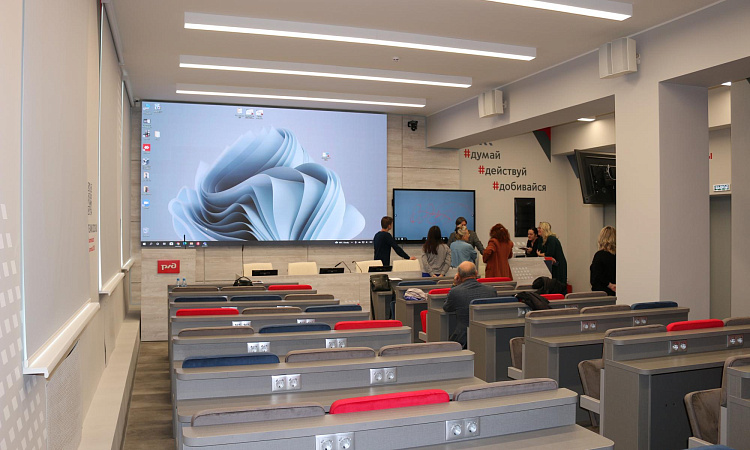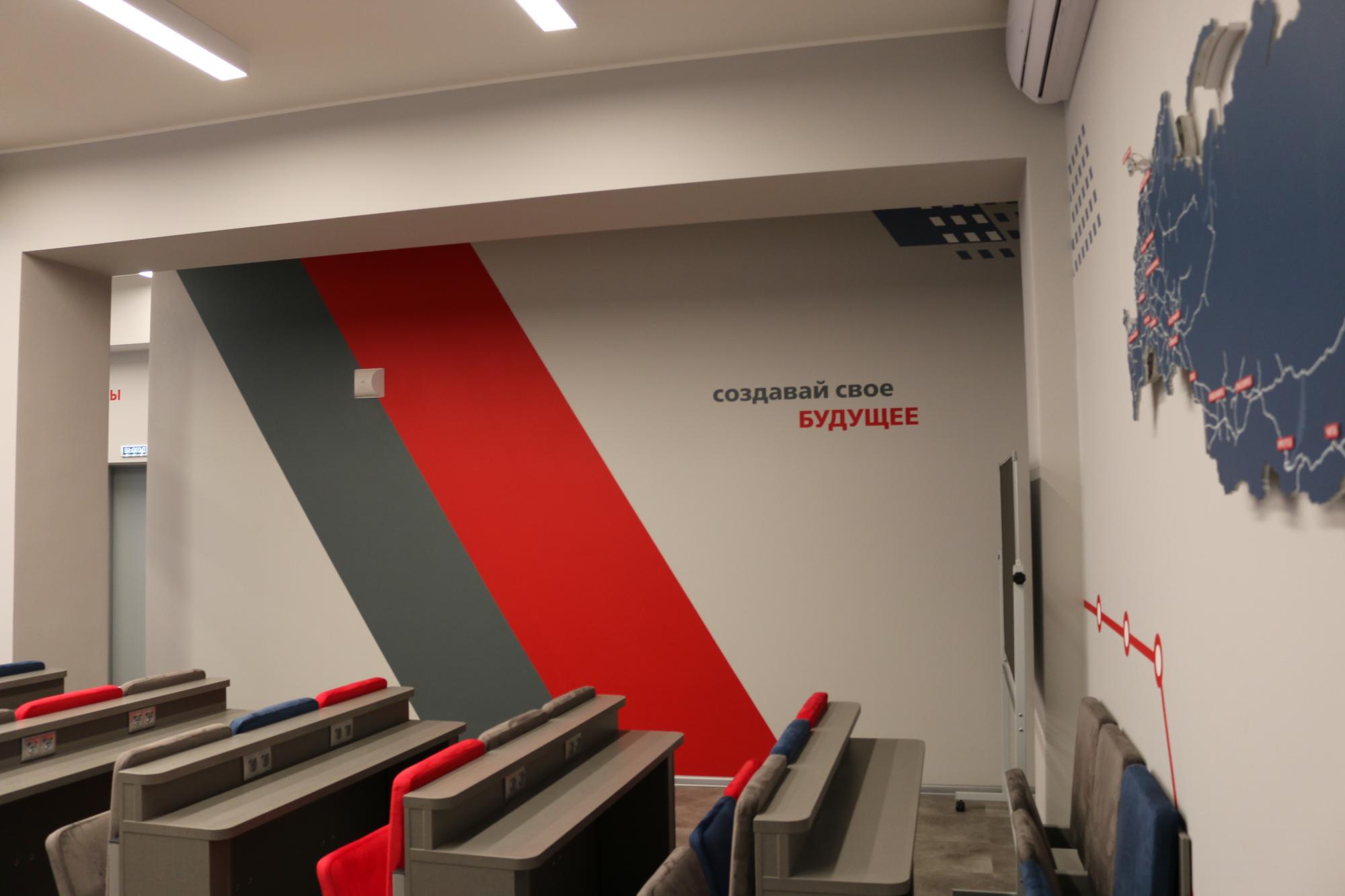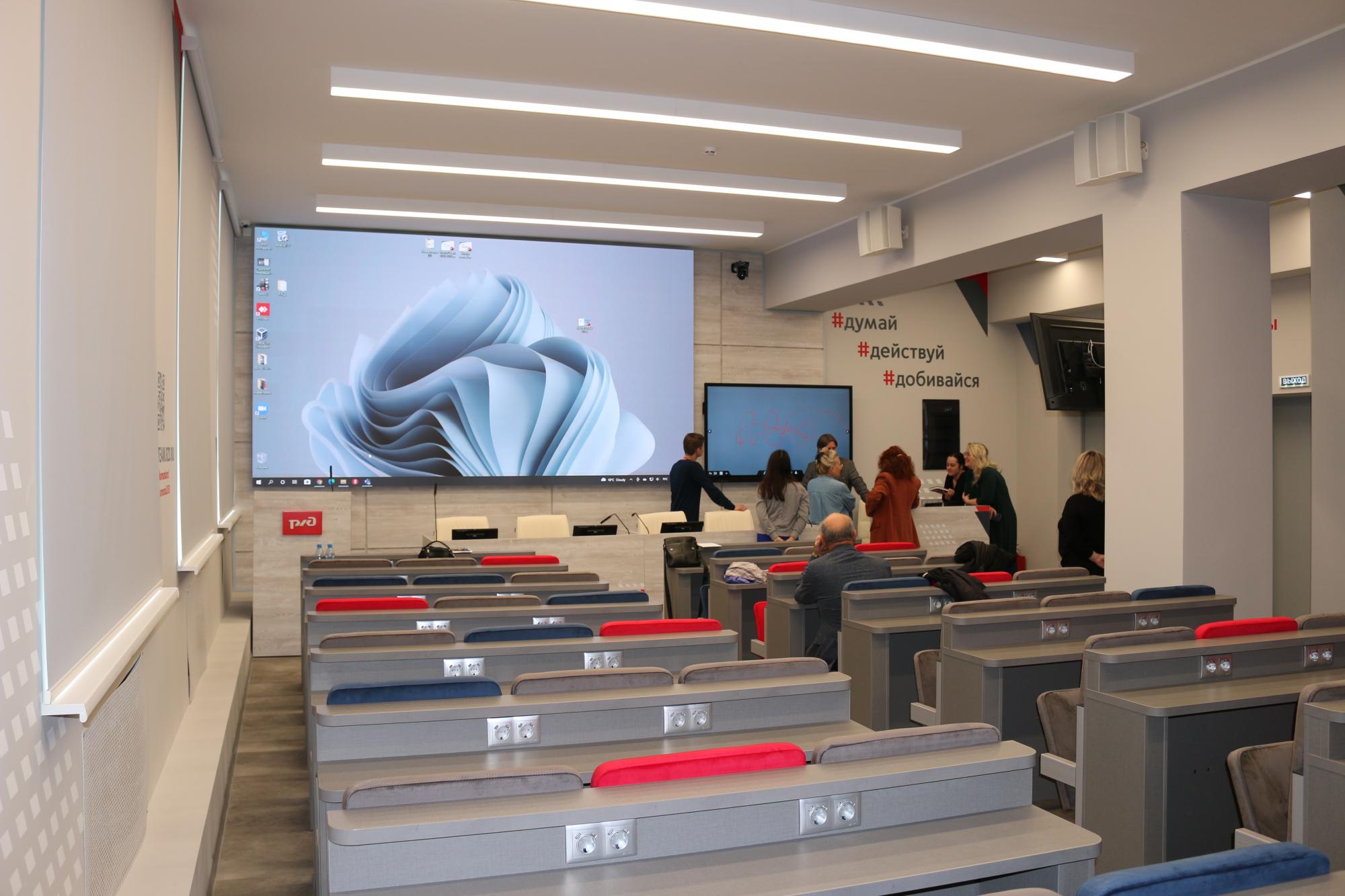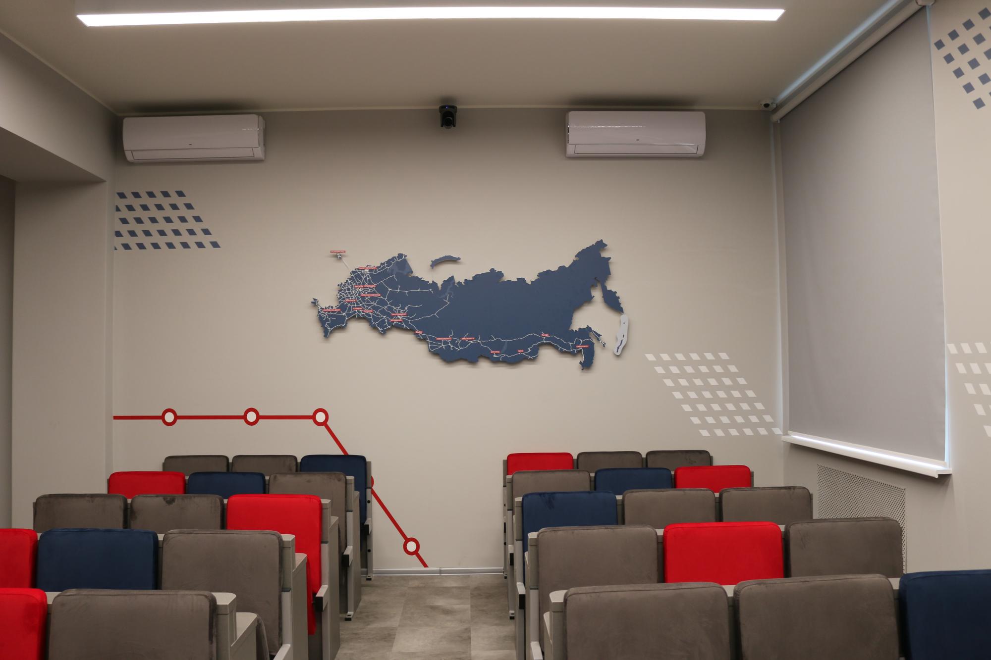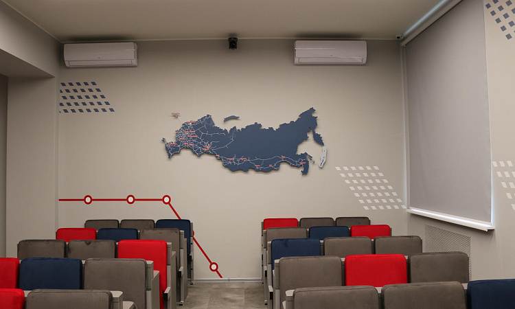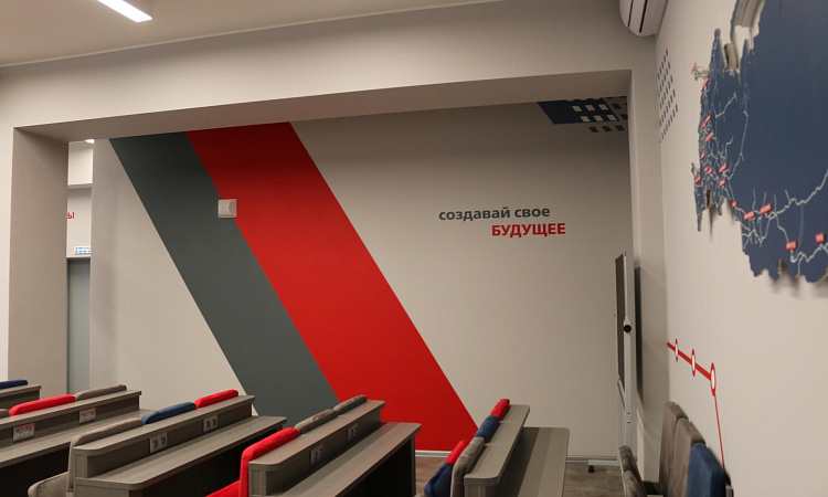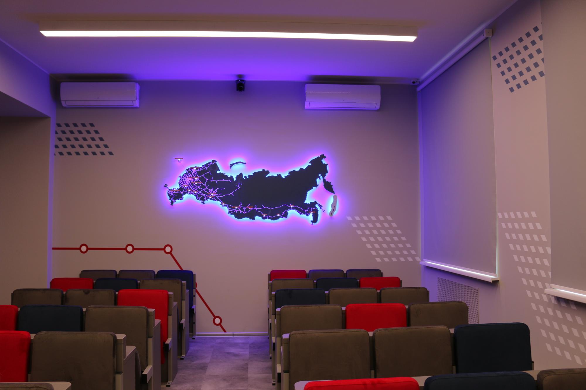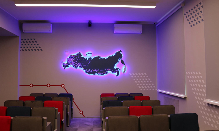 Брендированная аудитория служит для проведения образовательных лекций, так и для деловых, методических и общественных встреч. Здесь будут проводиться различные статусные мероприятия широкого спектра: конференции, мастер-классы, заседания учёных советов, различные совещания и открытые уроки, а также встречи с представителями руководства магистрали.