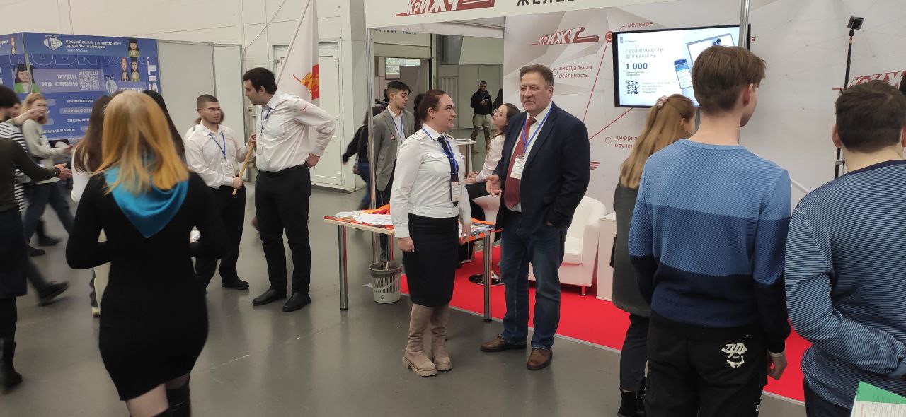 В рамках выставки с презентацией для молодых специалистов о преимуществах трудоустройства в ОАО "РЖД" выступил начальник службы управления персоналом Красноярской железной дороги Эдуард Ямщиков. Выступление продолжила начальник центра профориентации и развития карьеры выпускников КрИЖТ ИрГУПС Наталья Фадеева. Она рассказала про условия и особенности поступления на программы высшего образования на базе среднего профессионального для выпускников колледжей и техникумов Красноярского края. Кроме того, школьники старших классов с помощью технологий виртуальной реальности попробовали себя в роли сигналиста, монтера пути, бригадира и составителя поездов.
