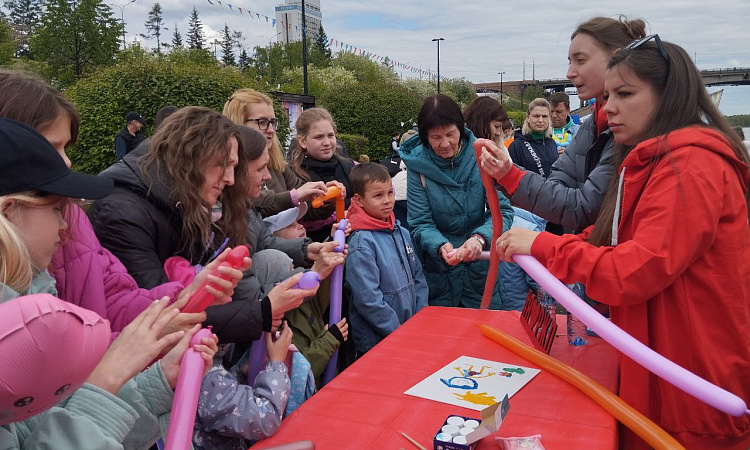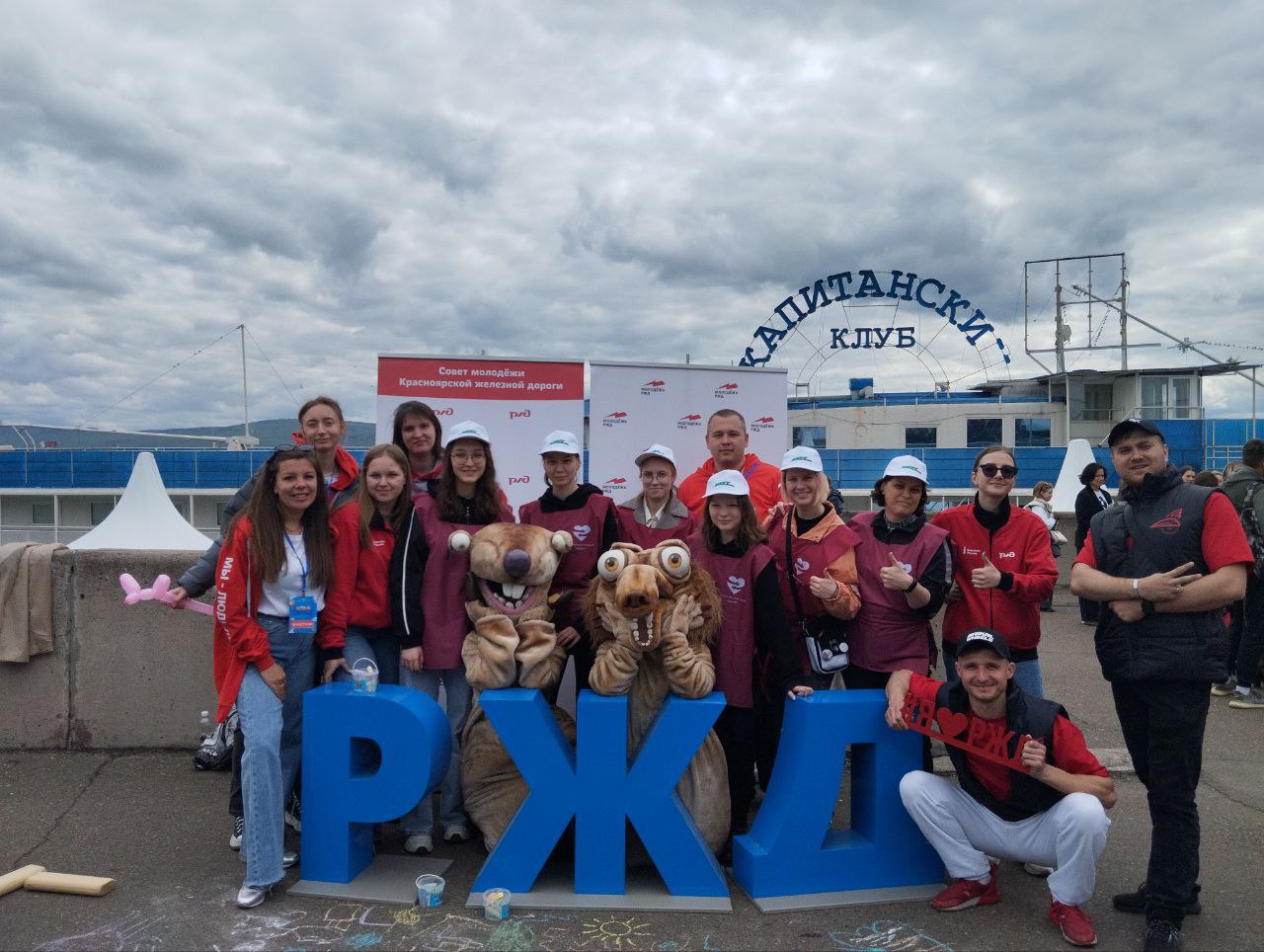 Молодежь Красноярской железной дороги и волонтеры КрИЖТ каждый год приглашены на это масштабное мероприятие. На площадке КрасЖД детей ждали такие интерактивы: аквагрим, конкурс рисунков, ростовые куклы из мультфильма «Ледниковый период», дженга, мастер-класс с воздушными шарами, ждали ребятишек!