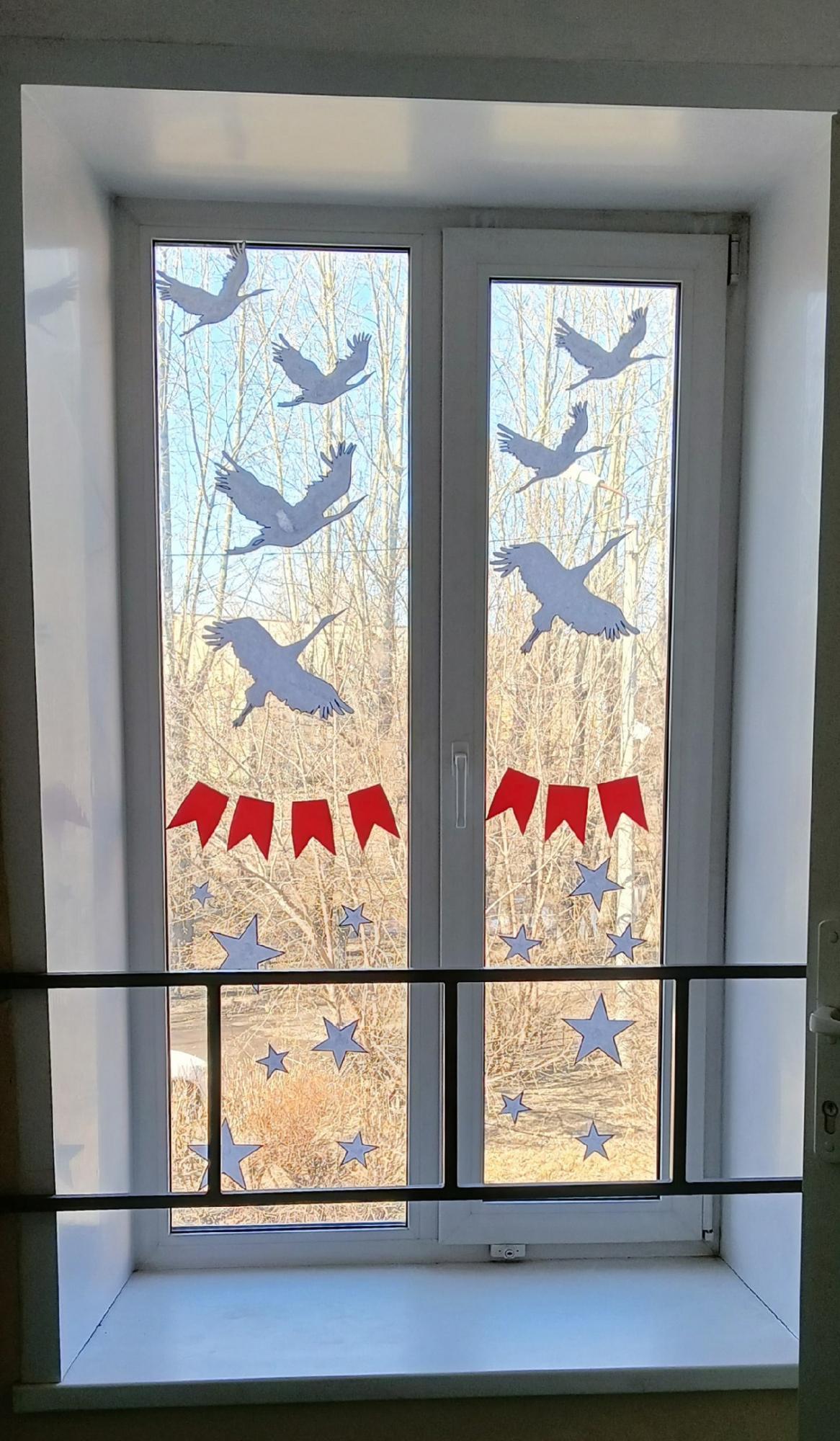 В преддверии праздника Дня Победы в Великой Отечественной войне обучающиеся КрИЖТ ИрГУПС поддержали традицию - приняв участие в акции "Окна Победы". Студенты украсили окна улетающими вдаль журавлями, салютом и флажками, что является символом памяти о погибших в Великой Отечественной войне.