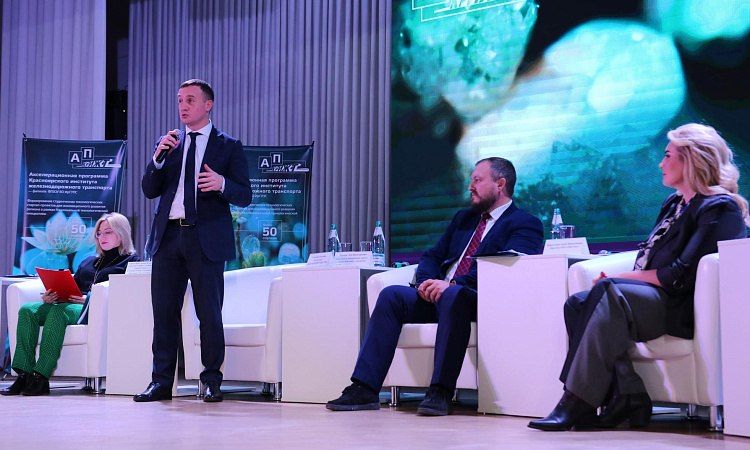Завершилось открытие акселерационной программы КрИЖТ презентацией рабочего графика программы начальником центра инновационного развития КрИЖТ Вячеславом Поморцевым.