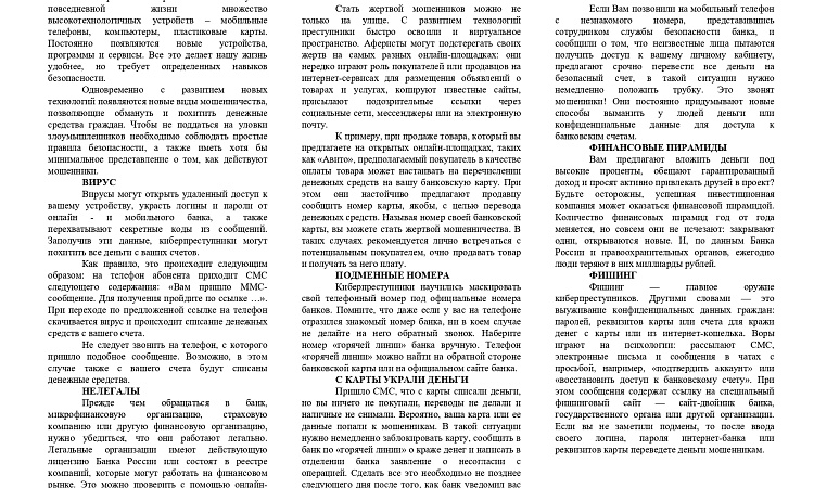 Памятка "Финансовая грамотность"