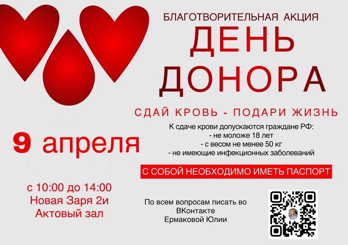 9 апреля 2024 года в нашем институте пройдёт "День донора"
