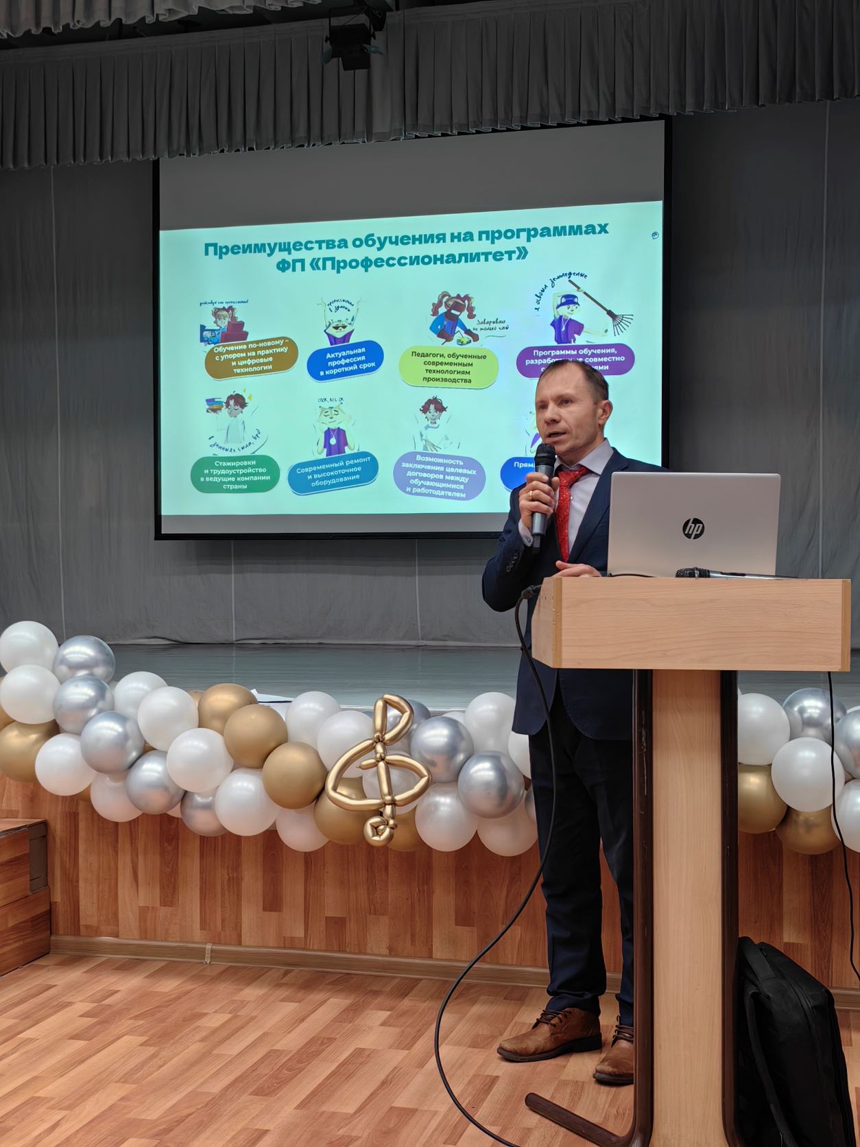 В целях популяризации федерального проекта «Профессионалитет» преподаватель КрИЖТ ИрГУПС Максим Михайлов принял участие 18 февраля в общешкольном Родительском собрании в школе № 143 г. Красноярска. На собрании присутствовало двести десять мам и пап девятиклассников - будущих абитуриентов.
