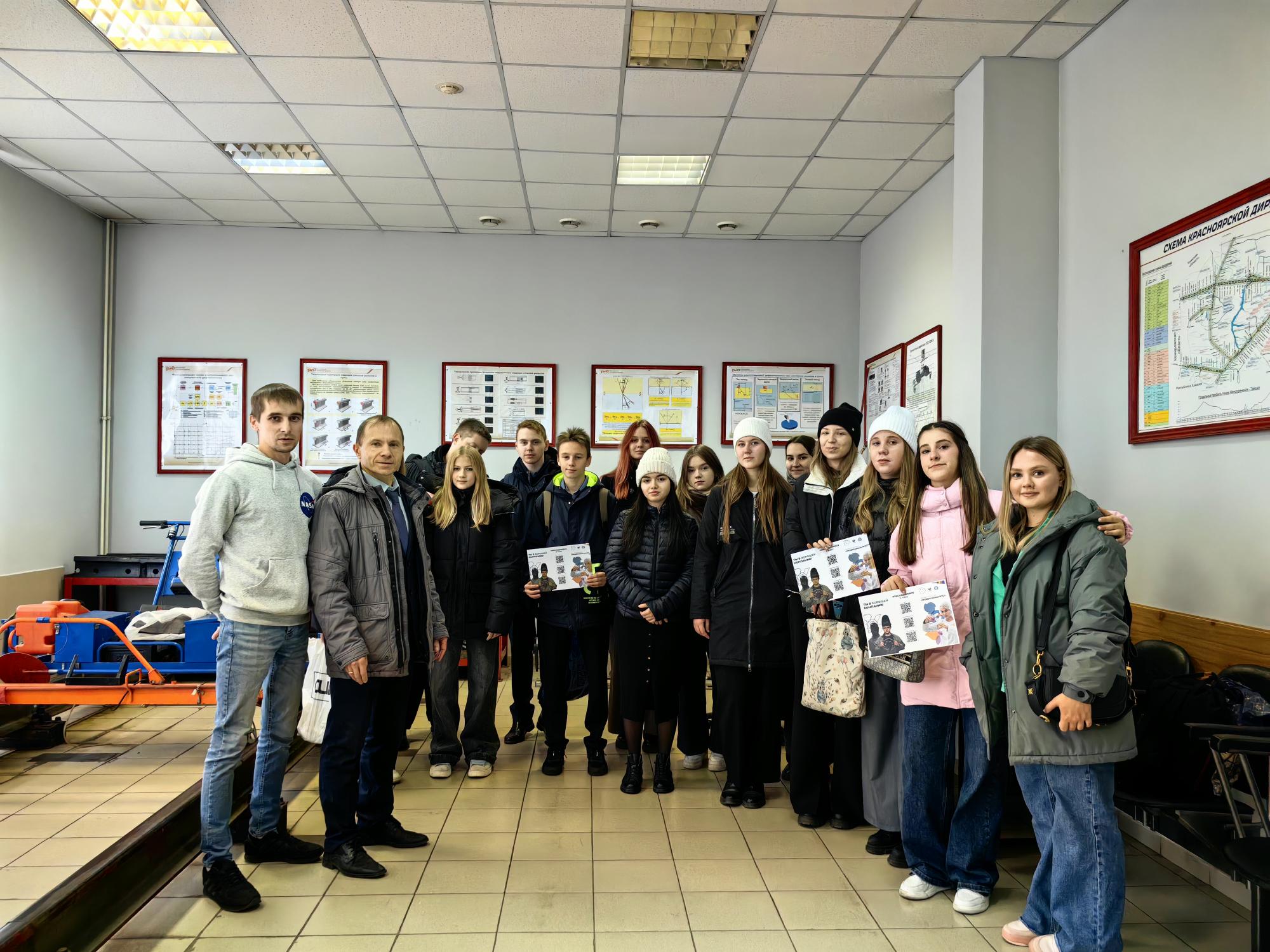 Благодарим работников предприятия: мастера участка диагностики Илью Мецгер и специалиста по охране труда Наталью Федотову за проведение экскурсии. Также рассказчиком выступала студентка КрИЖТ Анна Шубкина, которая является амбассадором федерального образовательного проекта "профессионалитет".