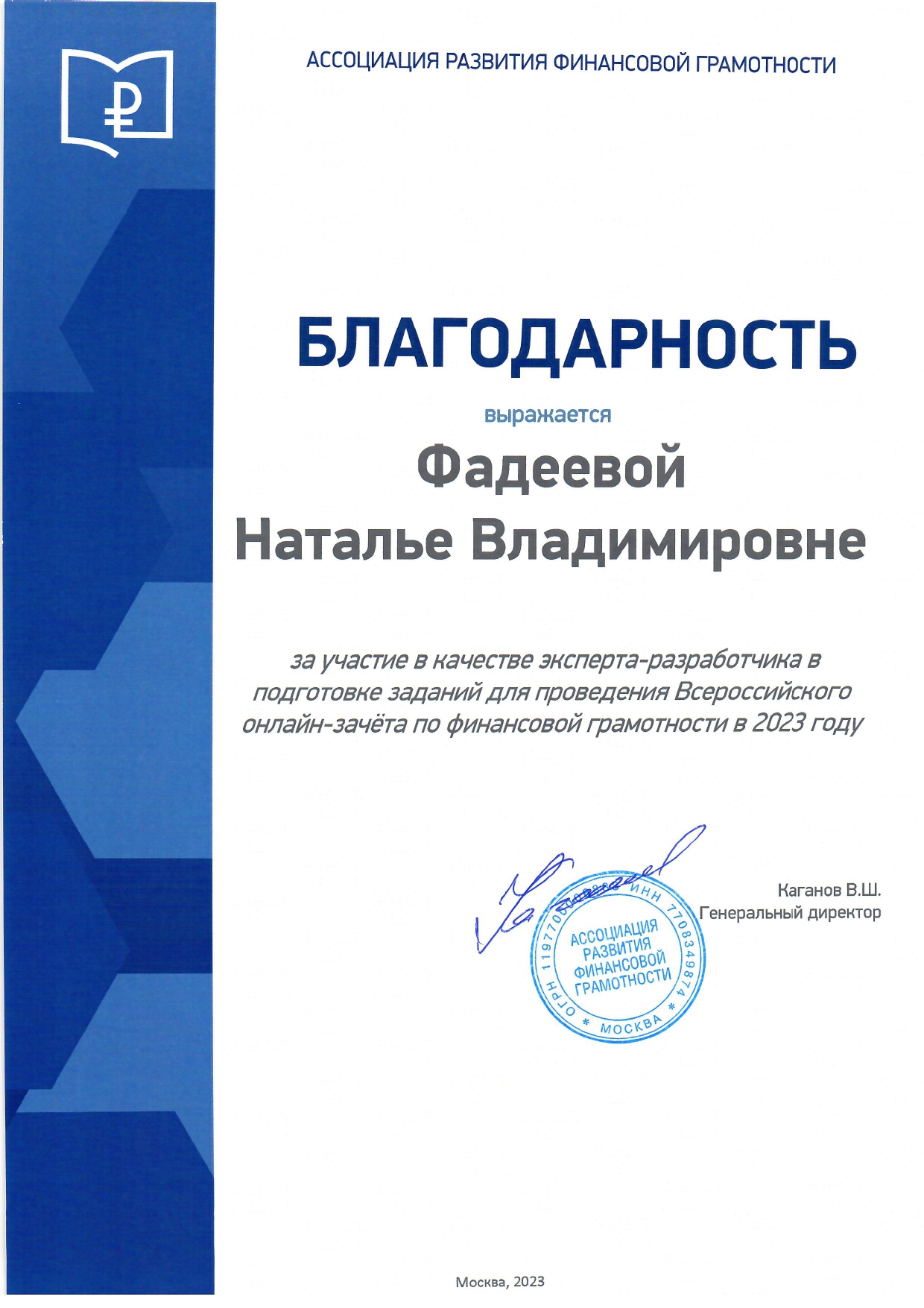 Итак, за внесение существенного вклада в развитие финансовой грамотности в России и высокий уровень личных компетенций в этом вопросе, генеральный директор АРФГ Вениамин Каганов наградил благодарственными письмами наших преподавателей, с чем мы их и поздравляем!