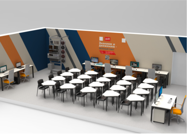 Монтаж современного высокотехнического оборудования выполняется на базе учебной аудитории КрИЖТ А-409. Помещение отремонтировано и брендировано согласно техническому заданию ОАО «РЖД».