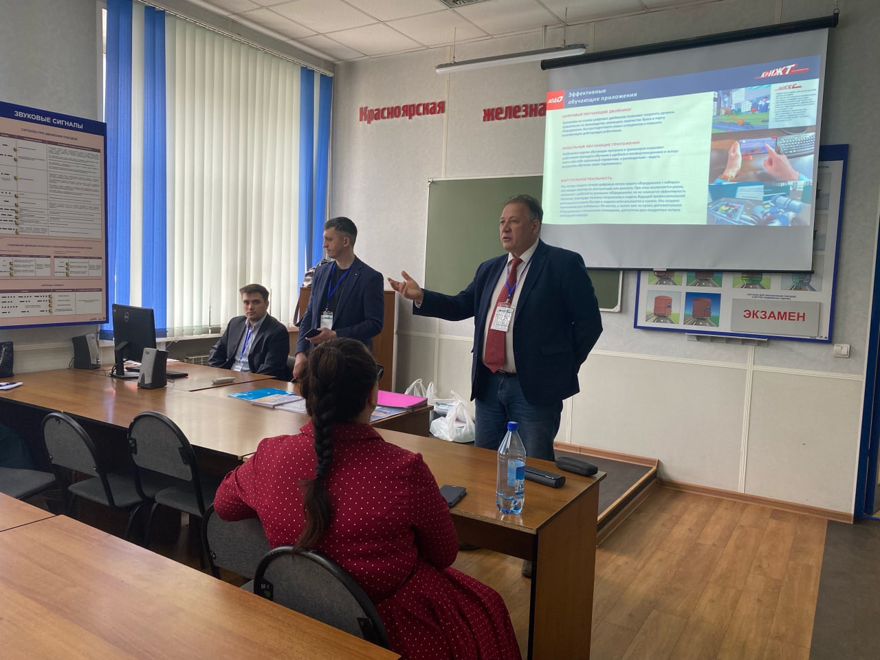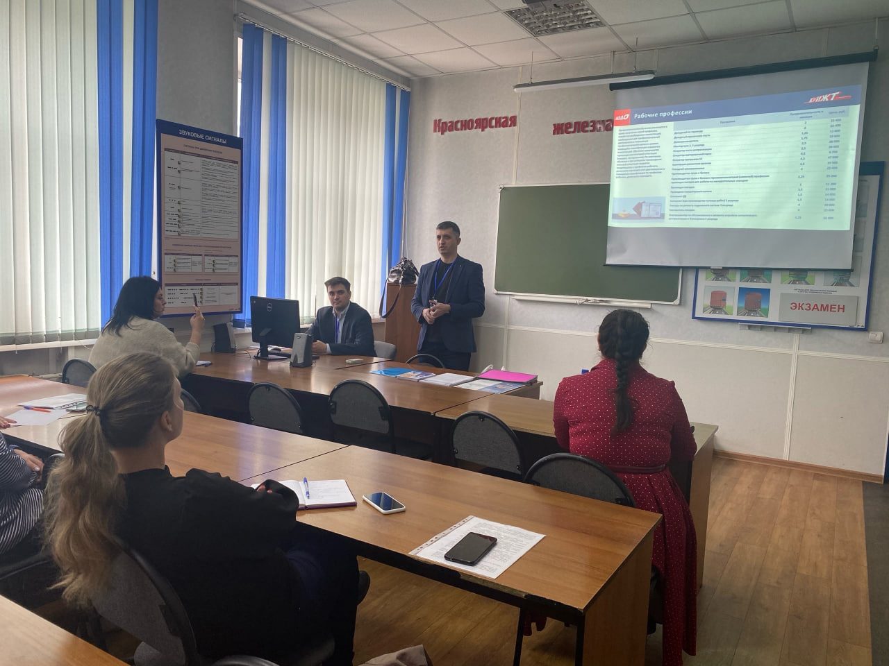 26 мая представители КрИЖТ провели две профориентационные встречи в городе Абакан. Первая встреча проводилась с сотрудниками кадрового блока Абаканского узла КрасЖД, где рассматривались вопросы поступления и обучения на заочную форму, ускоренное обучение по программам высшего образования на базе диплома СПО, возможности получения дополнительного профессионального образования, переподготовки и повышения квалификации в КрИЖТ ИрГУПС, а также возможности образовательного кредита. Вторая встреча проводилась с обучающимися школ Абакана и Минусинска в форме экскурсии по лабораториям с тренажёрами Абаканского филиала Красноярского УЦПК. За время экскурсии гости узнали об условиях и сроках подачи документов для поступления в КрИЖТ ИрГУПС, о преимуществах трудоустройства в ОАО «РЖД» и преимуществах заключения договора о целевом обучении. В составе делегации: заместитель директора КрИЖТ по развитию и связям с производством Алексей Орленко, начальник центра профориентации и развития карьеры выпускников Наталья Фадеева, руководитель дистанционного обучения Евгений Бойков, специалист по связям с общественностью Роман Нечаев и заместитель декана очного обучения Софья Ранюк.