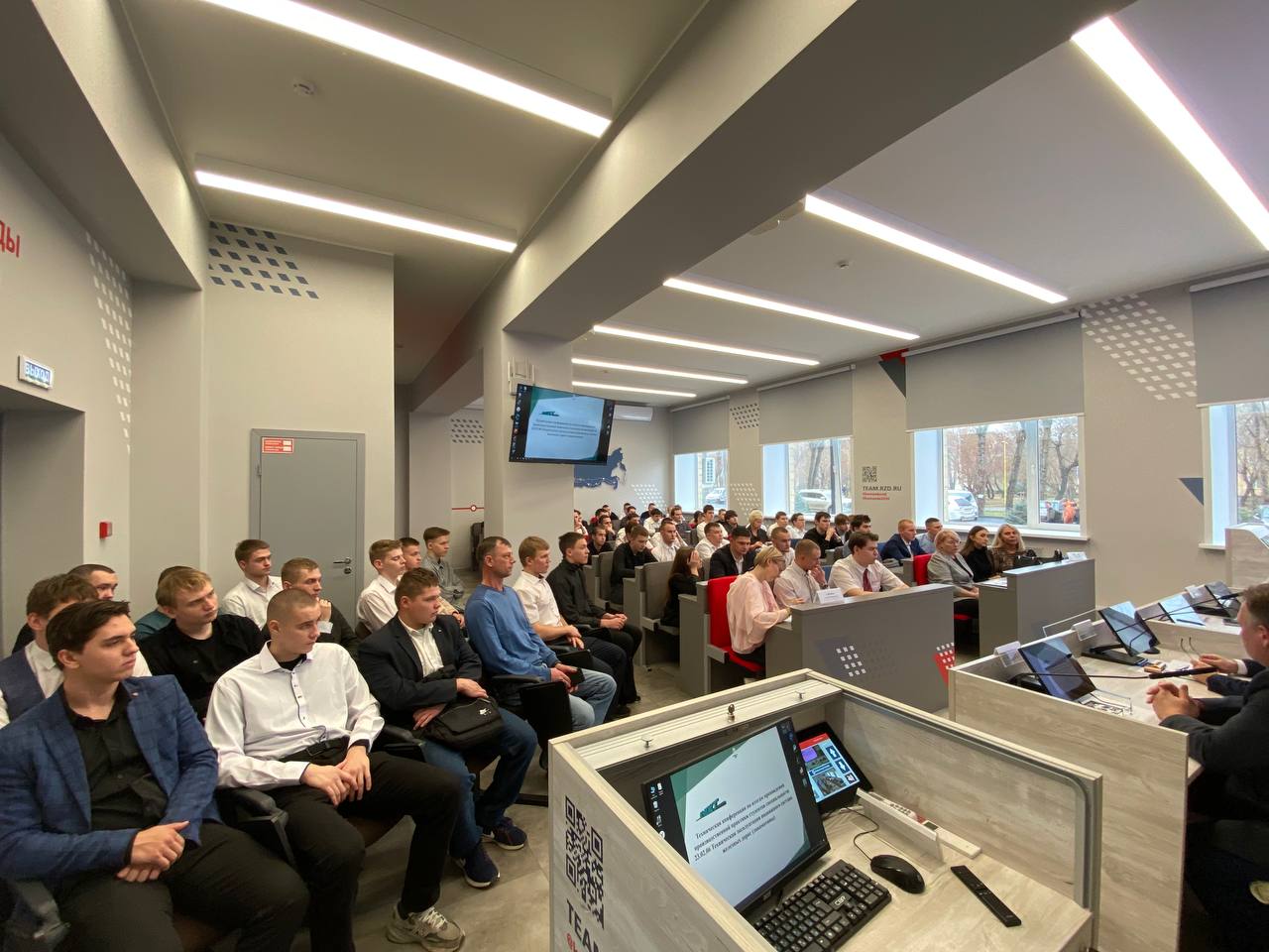 Студенты Екатерина Благинина, Алексей Сухаренко, Иван Бондарев и Дмитрий Оружило рассказали о своем увлекательном путешествии в мир производства, о трудностях, возникших на их пути, какой практический опыт они приобрели на практике и как быстро решались возникающие проблемы с помощью наставников. Состоялся интересный конструктивный разговор, было озвучено много интересных вопросов и получены исчерпывающие ответы на них.