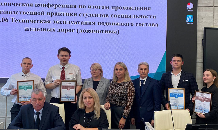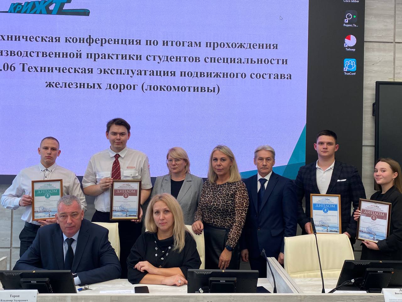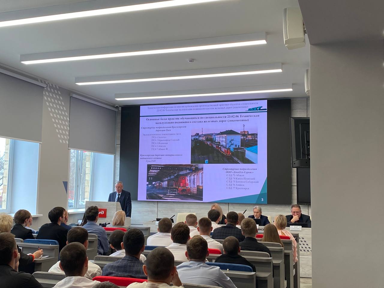 31 октября в КрИЖТ ИрГУПС прошла техническая конференция, посвященная итогам прохождения производственной практики на специальности "Техническая эксплуатация подвижного состава железных дорог (локомотивы)", в которой приняли участие студенты второго и третьего курса, руководители производственной практики от техникума, заведующий отделением «Электромеханическое» Алена Ворошилова, заместитель директора по развитию и связям с производством Алексей Орленко и представители работодателя: заместитель начальника Красноярской дирекции моторвагонного подвижного состава по кадрам и социальным вопросам Виктор Данько; заместитель начальника по управлению персоналом сервисного локомотивного депо Красноярск ООО «Локотех-сервис» Ольга Власенко; заместитель начальника Эксплуатационного локомотивного депо Красноярск-Главный по кадрам и социальным вопросам Наталья Сургутская.