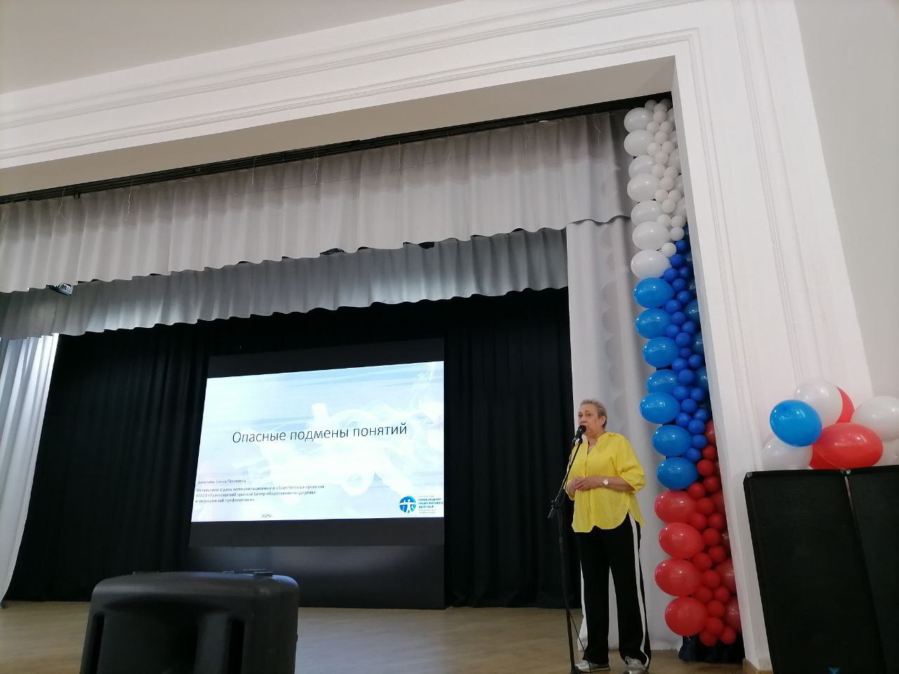 26 мая 2025 года в актовом зале КрИЖТ ИрГУПС начальник отдела коммуникационных и общественных проектов Красноярского краевого Центра общественного здоровья и медицинской профилактики Елена Павловна Замятина провела интерактивную лекцию «Подмена понятий» для студентов СПО (в количестве 465 человек).