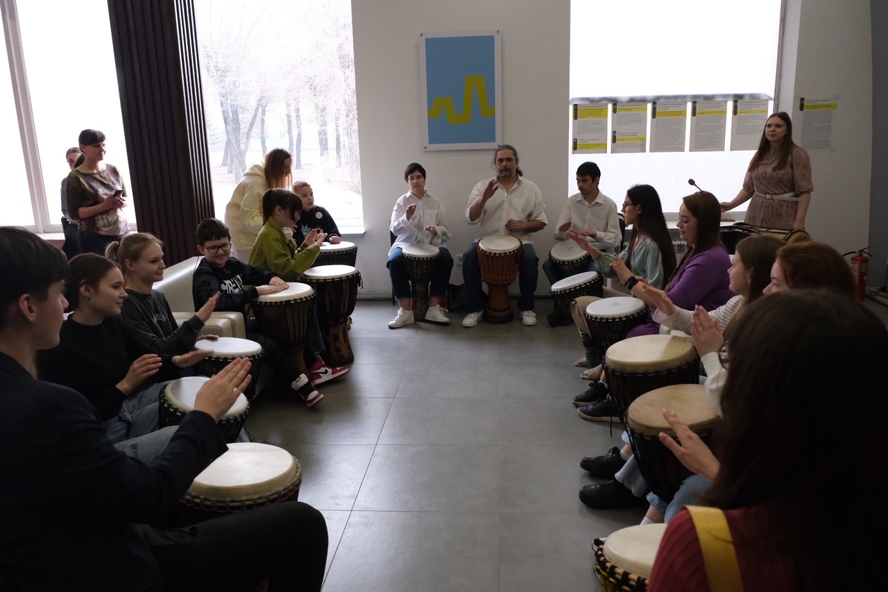 Волонтеры и неравнодушные жители г. Красноярска знакомились с ребятами с расстройством аутистического спектра: играли вместе с ними на африканских барабанах и в гигантский тетрис, собирали бутерброд в свой рост, обнимались с героями мультфильма «Ледниковый период» и раскрашивали деревянные сердечки, которые нам подготовили ребята с аутизмом на своих занятиях. Мы стали зрителями невероятно атмосферного, душевного концерта, участниками которого в том числе стали ребята с РАС.