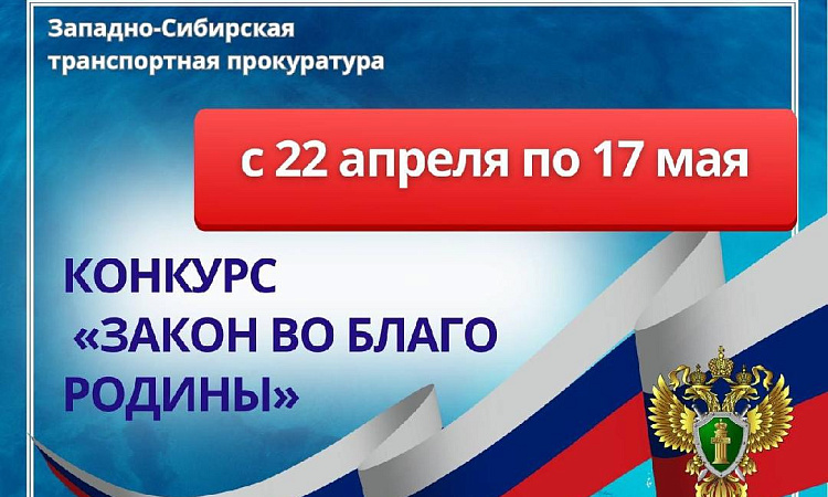 Западно-Сибирской транспортной прокуратурой с 22 апреля по 17 мая проводился конкурс среди обучающихся образовательных организаций транспортного профиля на тему: «Закон во благо Родины».