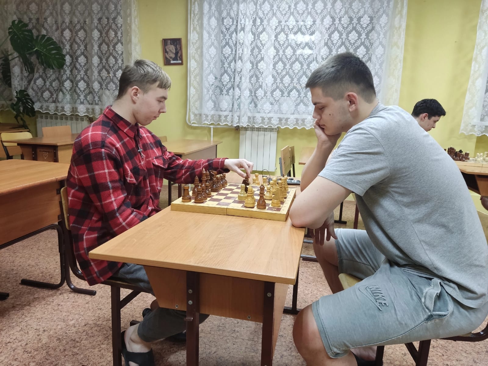 В студенческом общежитии №1 КрИЖТ ИрГУПС 05.03.2023 г. состоялся шахматный турнир для студентов. К участию в турнире были приглашены все желающие студенты, проживающие в общежитии. В шахматных баталиях приняли участие: Юрий Юбухаев, Константин Рыбин, Вадим Викулин, Александр Ольхов, Артем Коптий, Геннадий Суздальцев, Михаил Раздобарин, Михаил Илющенко. Было очень интересно наблюдать за красивыми комбинациями, серьезной напряженной игрой.
