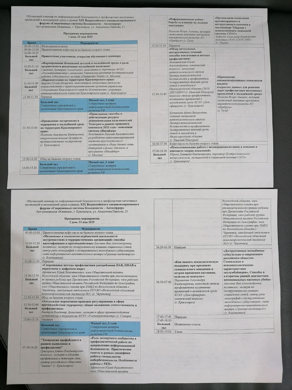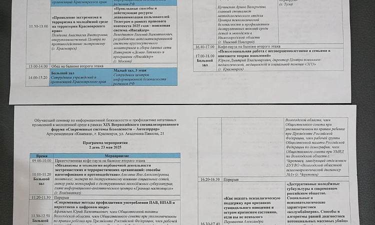 С 22 по 23 мая 2025 года сотрудники КрИЖТ Оксана Кейм (социальный педагог) и Елена Шафиева (педагог-психолог) приняли участие в обучающем семинаре по информационной безопасности и профилактике негативных проявлений в молодежной среде, который проходил в рамках XIX Всероссийского специализированного форума «Современные системы безопасности – Антитеррор». В семинаре приняли участие 150 специалистов из 16 регионов России.