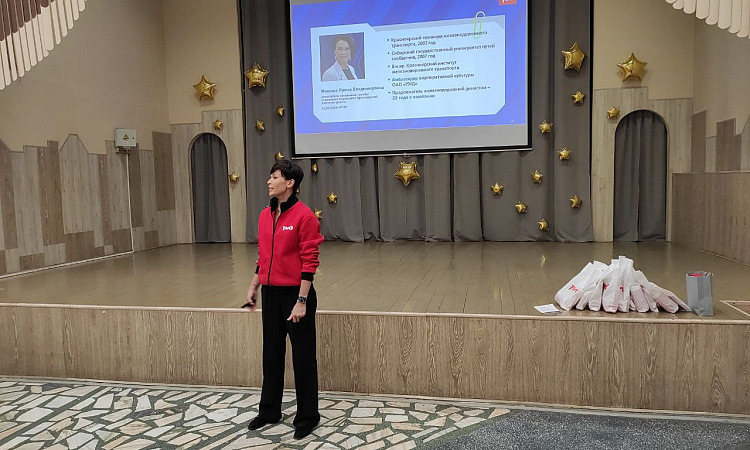 Мероприятие стартовало с презентации условий труда в ОАО "РЖД" заместителем начальника службы управления персоналом Красноярской железной дороги Ириной Иошиной, также Ирина Владимировна детально рассказала о преимуществах целевого обучения.