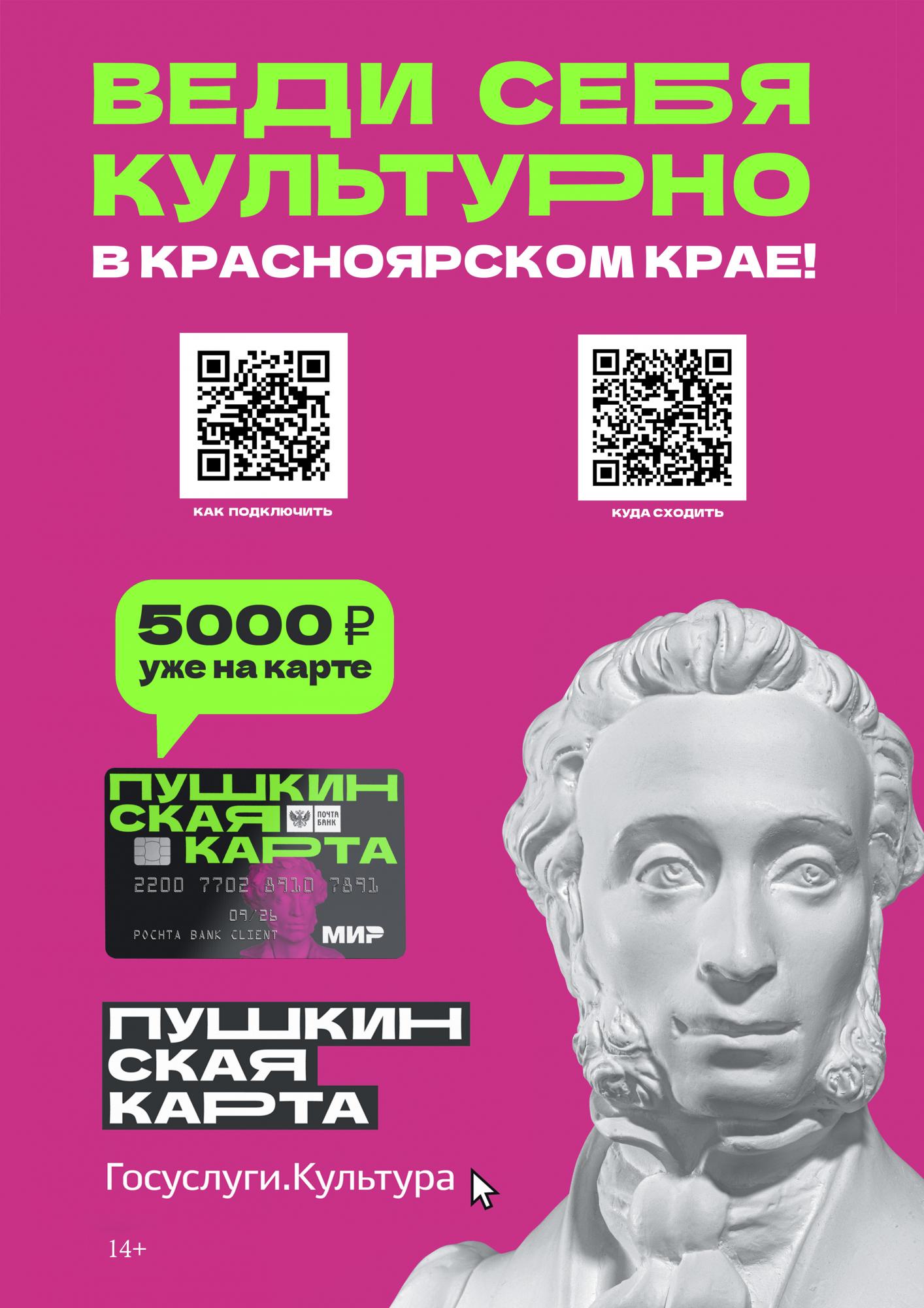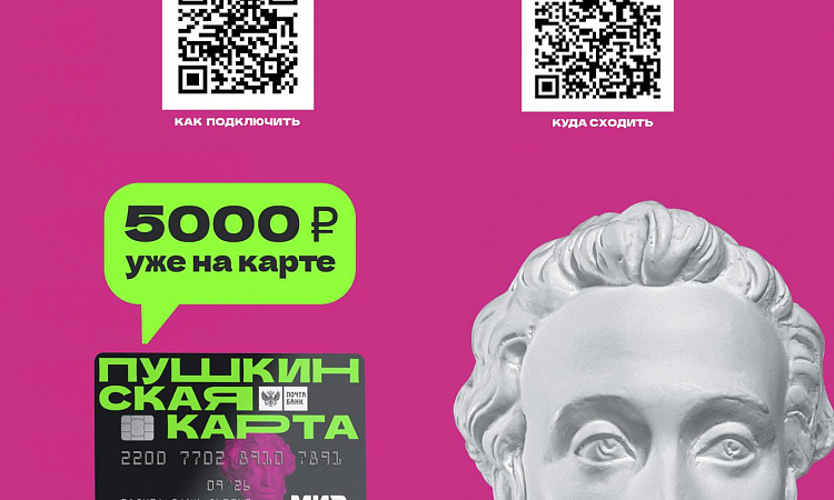 Пушкинская карта — это твой пропуск в мир культурных событий страны. На карту уже начислено 5 000 рублей, которые можно потратить на билеты в музеи, театры, концертные залы, филармонии, консерватории и другие культурные учреждения страны.