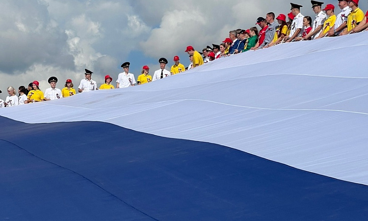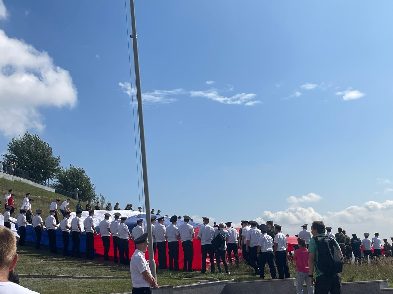 У одного из символов города Красноярска, на Караульной горе, был развернут огромный триколор. Размеры полотна составили 23,6 метров в длину и 17,5 метров в ширину, а вес – 60 кг.
