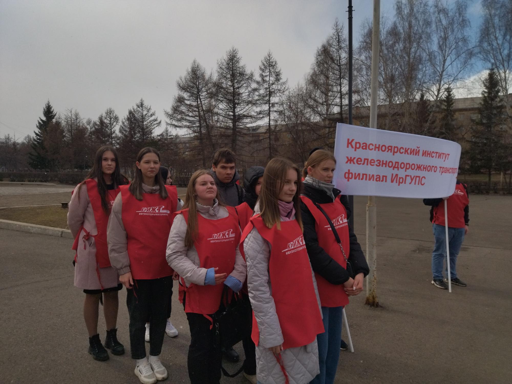 26 апреля студенты КрИЖТ ИрГУПС приняли участие в открытии акции «Память» по уборке захоронений участников ВОВ.