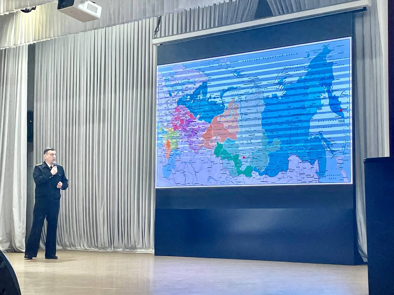 В феврале в КрИЖТ ИрГУПС прошла встреча с капитаном второго ранга Ильей Михайловым. Студенты получили информацию о военной службе в Пограничном управлении ФСБ России по Восточному Арктическому району г. Петропавловск-Камчатский. Студентам были продемонстрированы корабли ВМФ России. Представлены основные направления деятельности Федеральной службы безопасности.