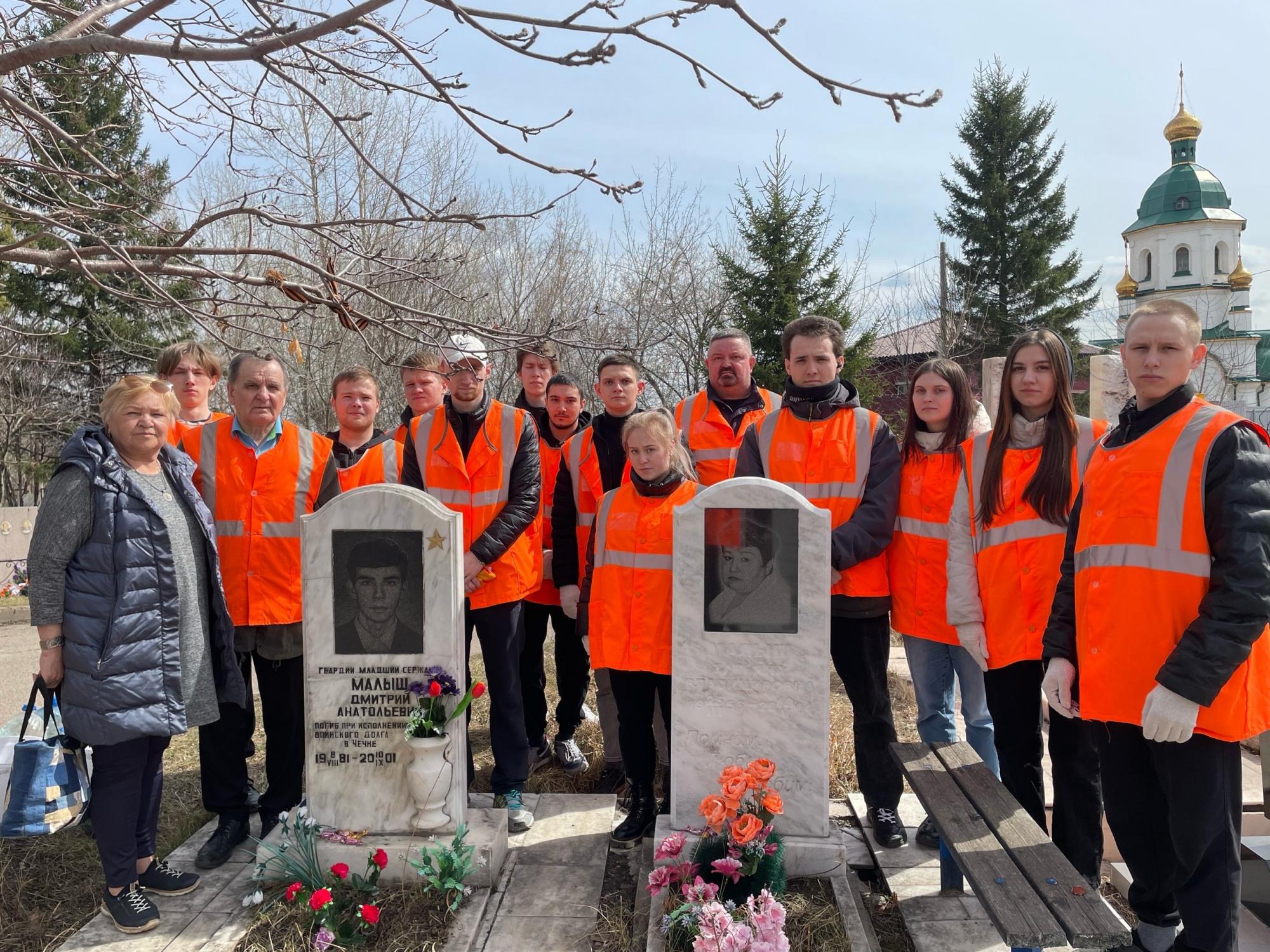 4 мая студенты КрИЖТ ИрГУПС группы ЭПСл 11-22-4 и ЭПСв 11-22-3 под руководством преподавателей Владимира Иванова и Сергея Домнина привели на кладбище “Бадалык” в эстетический вид места захоронения выпускников, погибших в Афганистане и Чеченской Республике, а также могилы воинов интернационалистов из Афганистана.