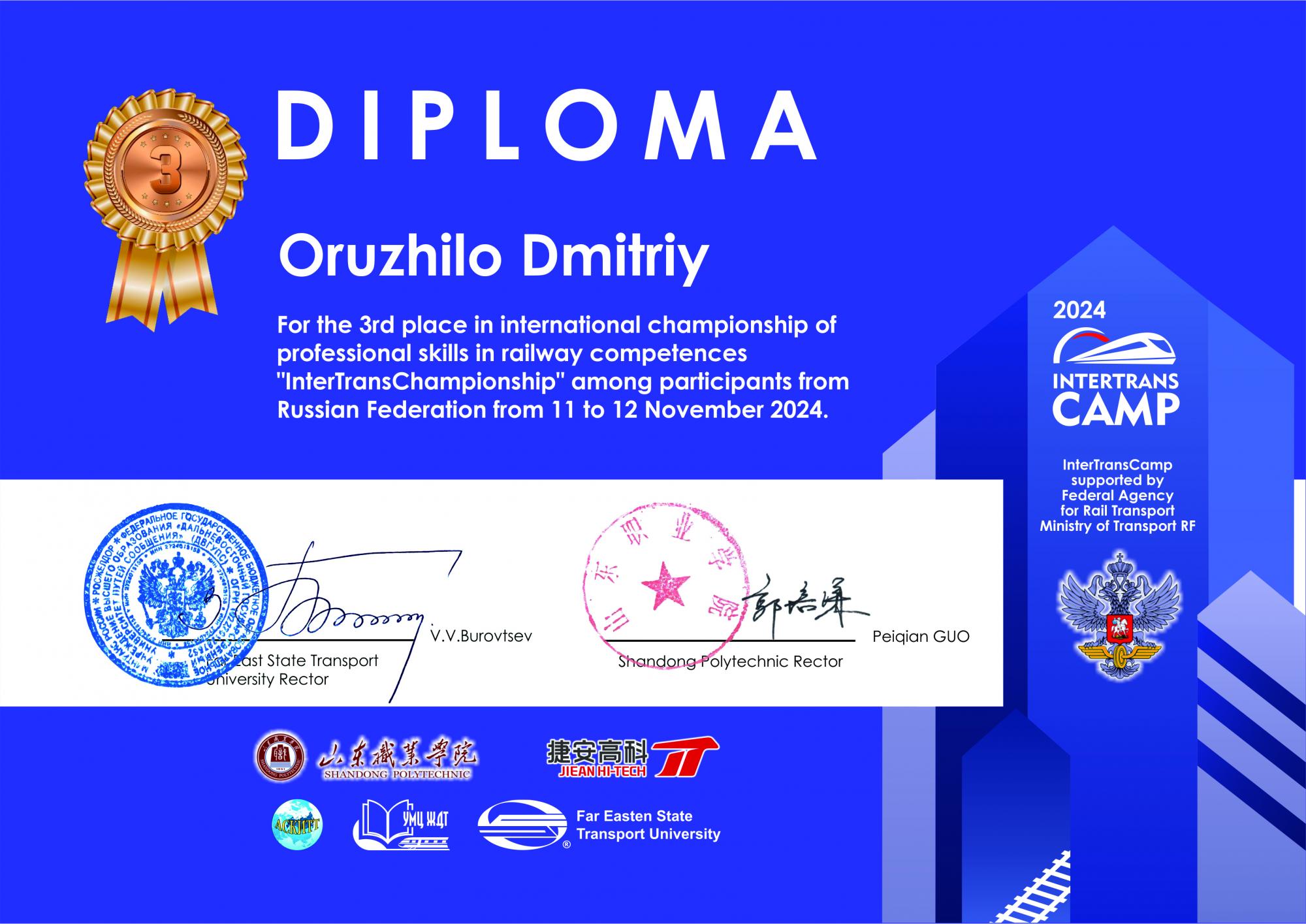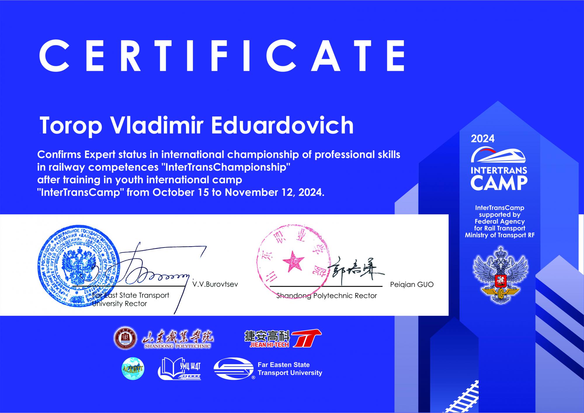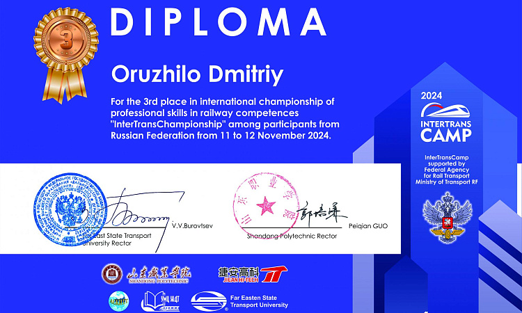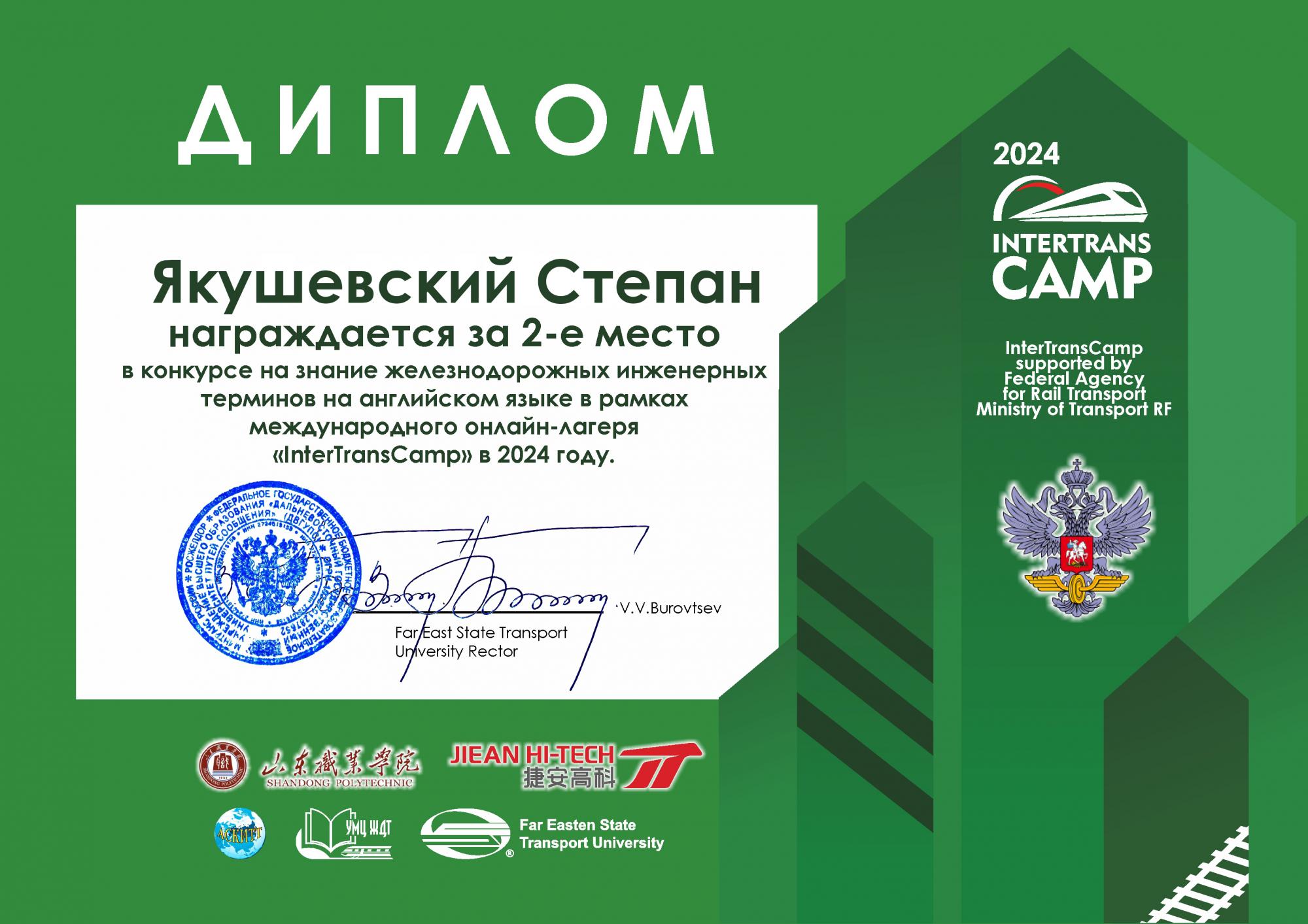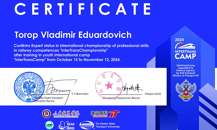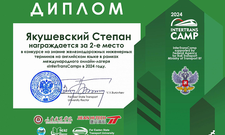 Обучающиеся техникума КрИЖТ ИрГУПС специальности Техническая эксплуатация подвижного состава железных дорог приняли участие в первом семестре 2024-2025 учебного года в ежегодном международном молодёжном онлайн-лагере «InterTransCamp», а также участие в международном чемпионате по железнодорожным компетенциям «InterTransСhampionship», который является одним из самых актуальных и современных инструментов профессионального мастерства на международном уровне.