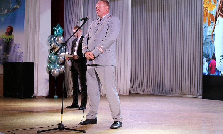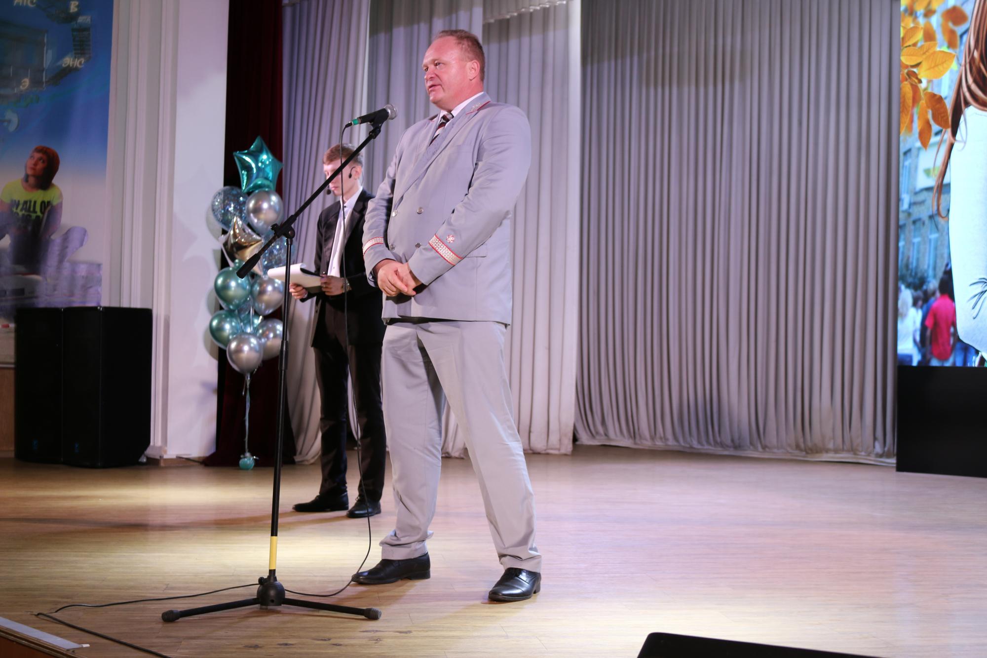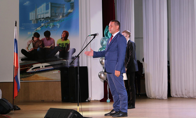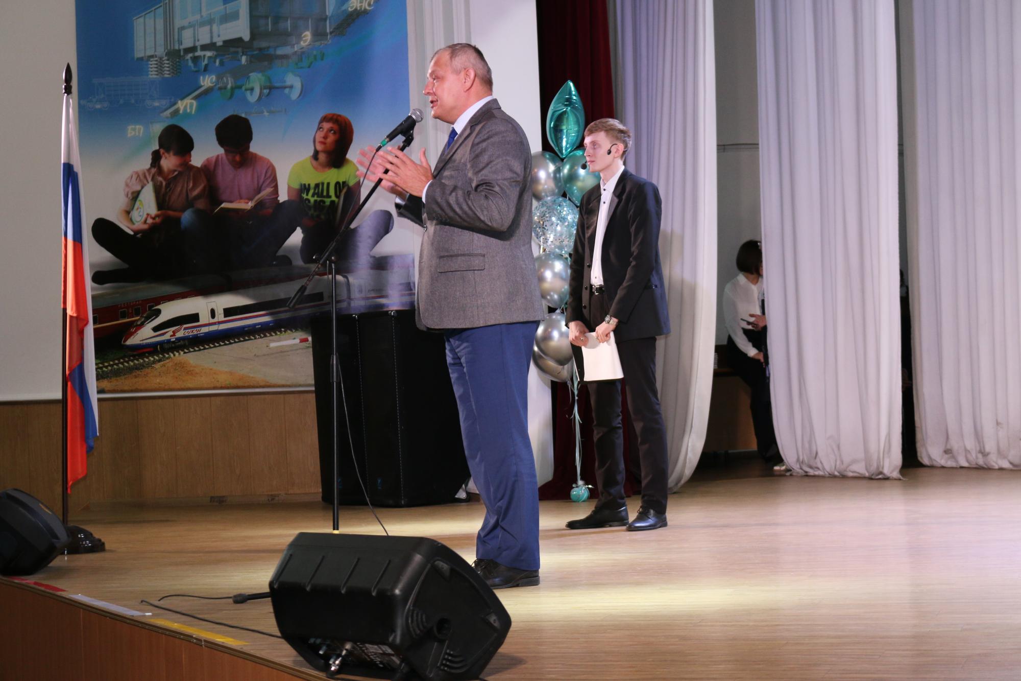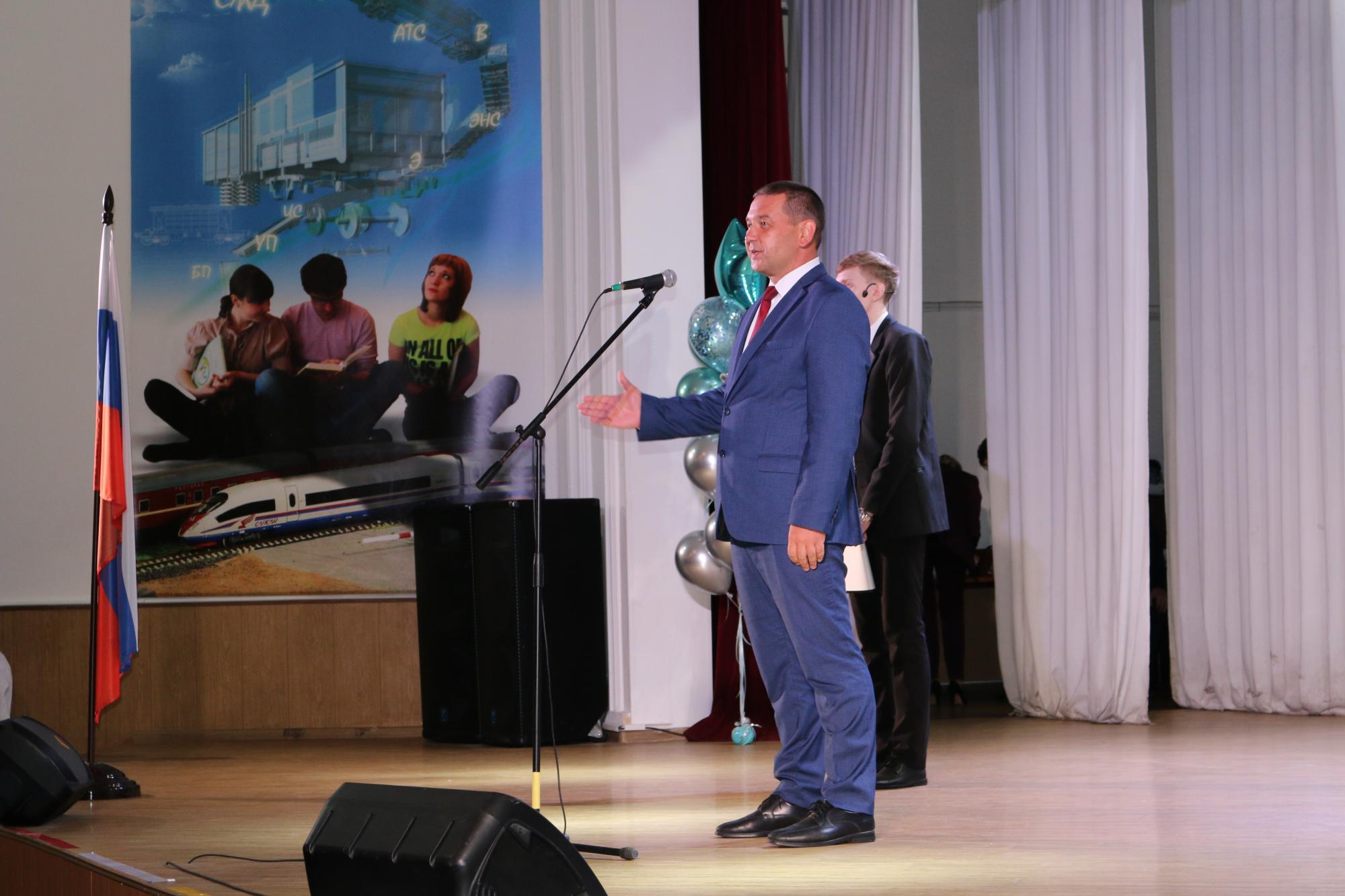 В КрИЖТ продолжается празднование дня знаний. Следующая линейка прошла для студентов института. Первым студентов поздравил директор института Евгений Савченко. Так же мероприятие почтили присутствием начальник Красноярской железной дороги Алексей Туманин, начальник отдела транспортной безопасности Сибирского территориального управления Федерального агентства железнодорожного транспорта Николай Борисов, заместитель руководителя Октябрьского района города Красноярска Сергей Сухарев, начальник Красноярской дирекции инфраструктуры Игорь Кузнецов и исполняющий обязанности председателя ДОРПРОФЖЕЛ на Красноярской железной дороге Игорь Белозерский.