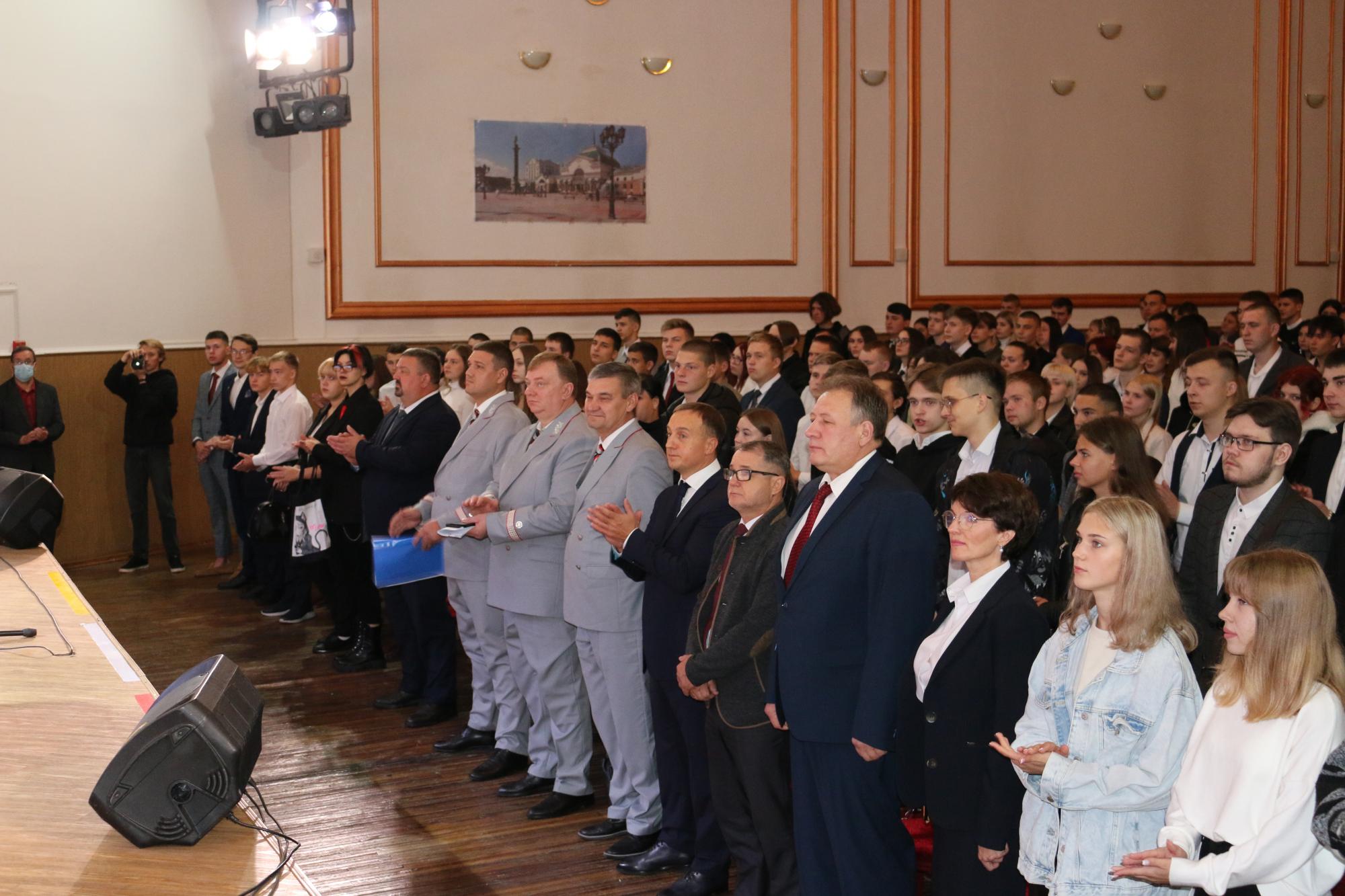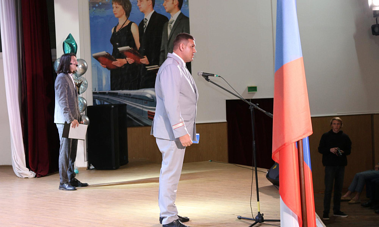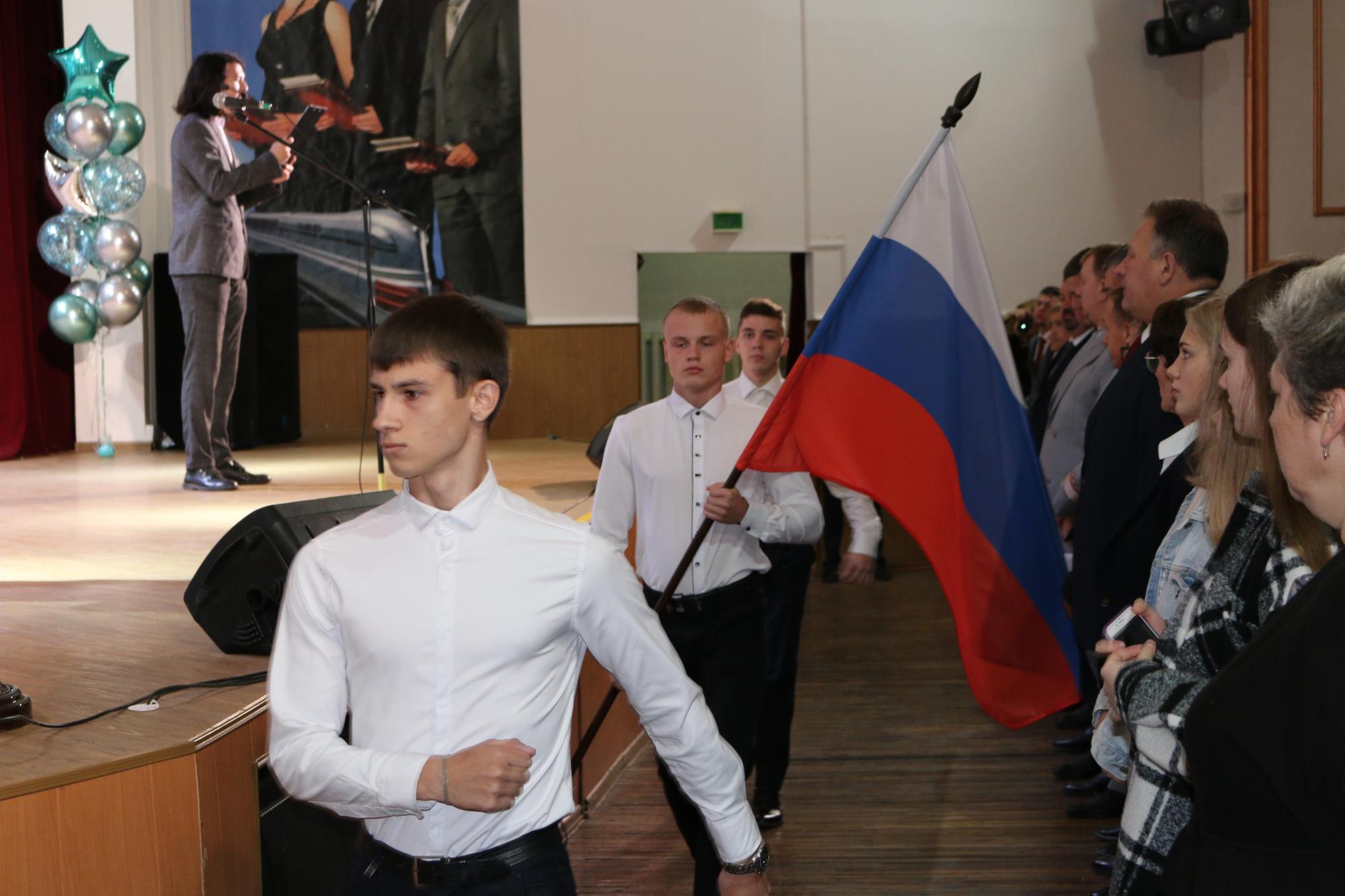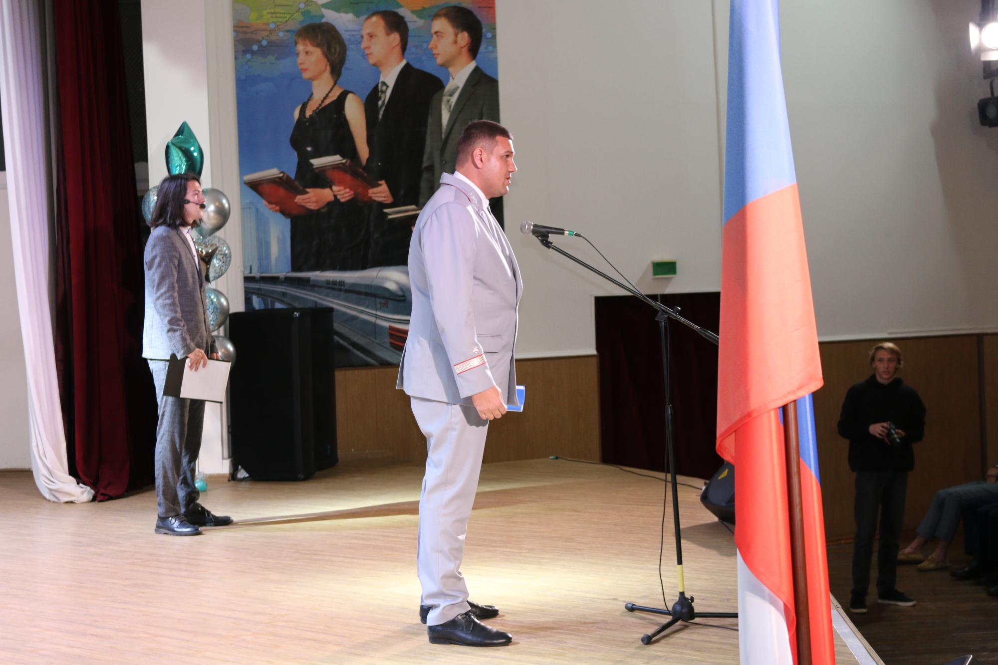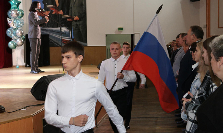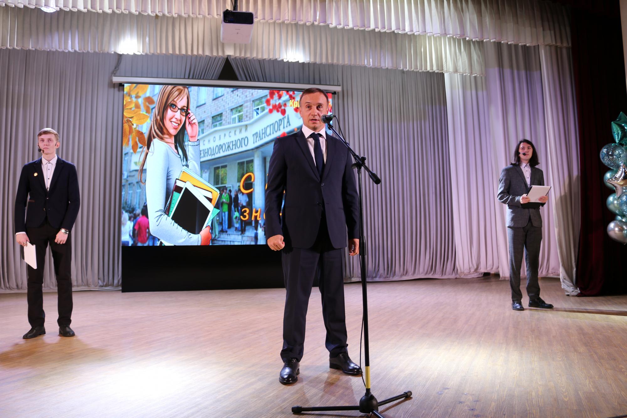 День знаний открывает новый учебный год в КрИЖТ. Начало мероприятия ознаменовалось поднятием флага под гимн Российской Федерации. На торжественной линейке новых студентов техникума поздравил директор института Евгений Савченко. Так же с поздравительными словами выступили представители ОАО «РЖД»: начальник Красноярской дирекции управления движением Петухов Сергей; начальник Красноярской дирекции тяги – Андрей Ундрайтис и начальник службы вагонного хозяйства Красноярской дирекции инфраструктуры – Алексей Карасёв.