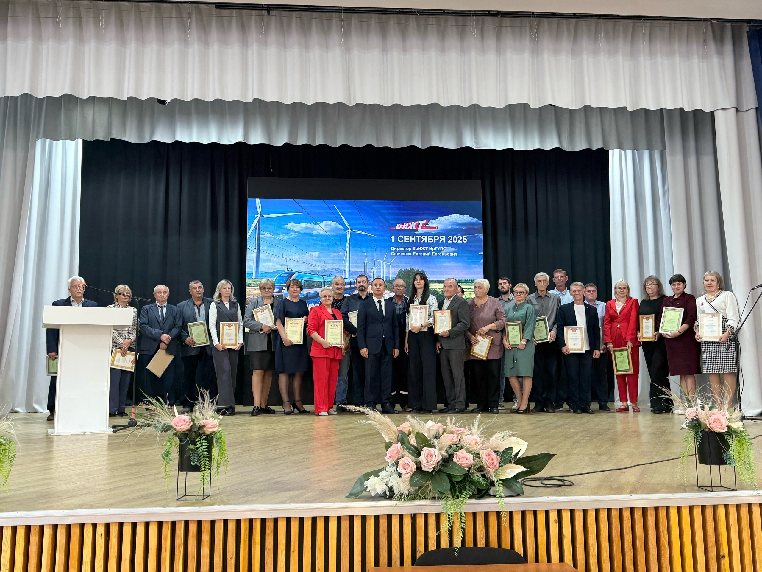Началом праздничной программы стало поздравление двух юбиляров. Их многолетний труд и преданность институту были отмечены благодарственными письмами, красочными букетами и денежными премиями. В атмосфере всеобщего уважения коллеги выразили признательность юбилярам за их вклад в развитие КрИЖТ и передачу опыта новым поколениям специалистов.