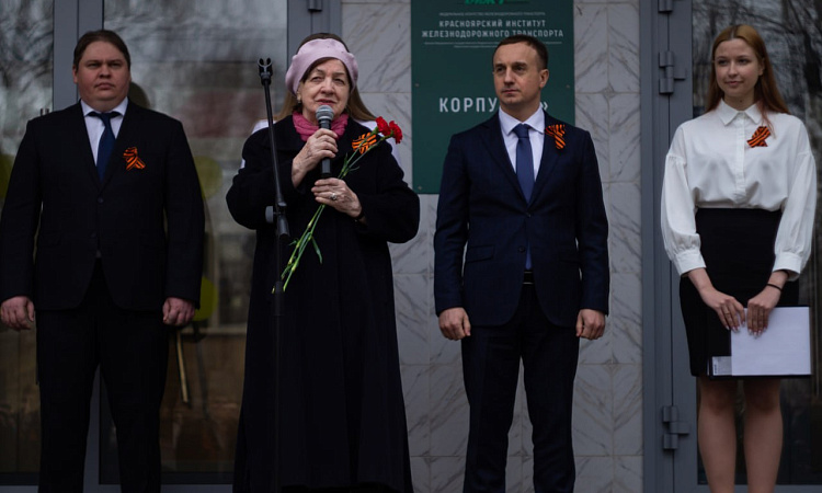 Также на митинге прозвучали слова поздравления от заместителя начальника отдела администрации Октябрьского района в городе Красноярск Елены Дорониной, председателя Совета ветеранов КрИЖТ Людмилы Гостяевой, и, конечно же, директора нашего института Евгения Савченко.