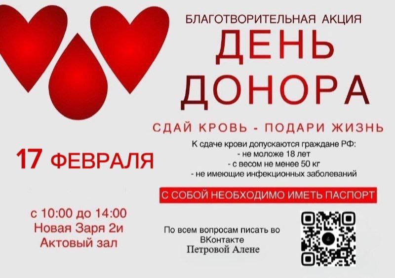 Донорство - уникальная возможность подарить кому-то жизнь, оно дает шанс помогать людям без вреда для своего здоровья. Каждый день переливание крови спасает сотни человеческих жизней. Давайте и мы, подарим кому-то жизнь, возможно именно в нашей крови сейчас кто-то нуждается!