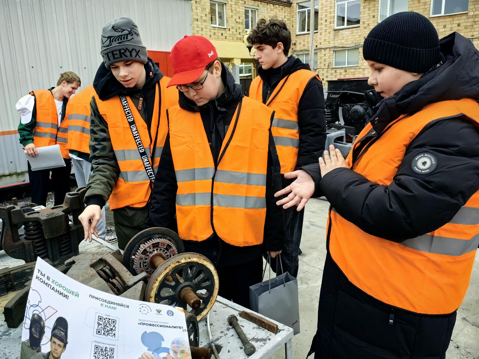 19 октября согласно графику экскурсий на предприятия Красноярской железной дороги - филиала ОАО "РЖД", проводимых в профессиональных образовательных учреждениях образовательно-производственного центра "Железнодорожник Енисейской Сибири" в рамках Единого дня открытых дверей федерального проекта "Профессионалитет" под руководством преподавателя КрИЖТ Максима Михайлова прошла экскурсия на учебный тренировочный полигон Красноярского института железнодорожного транспорта, на которой учащиеся 9 и 11 классов г. Красноярска узнали о профессиях "осмотрщик вагонов", "помощник машиниста", "слесарь по ремонту подвижного состава" и других.