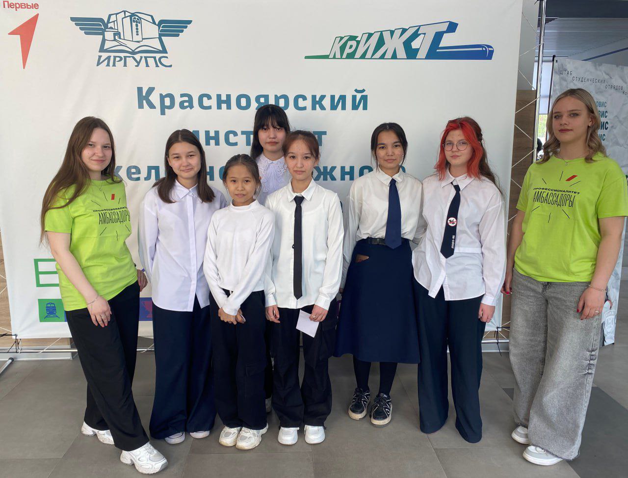 🚂 В мероприятии активное участие приняли Амбассадоры федерального проекта «Профессионалитет» КрИЖТ Екатерина Гальцева, Елизавета Малышева, Вадим Жуков и Иван Холодняк, которые провели увлекательную викторину для школьников по железнодорожной теме с призами - брендированными ручками и значками! А также было проведено консультирование школьников и их родителей о поступлении в КрИЖТ ИрГУПС.