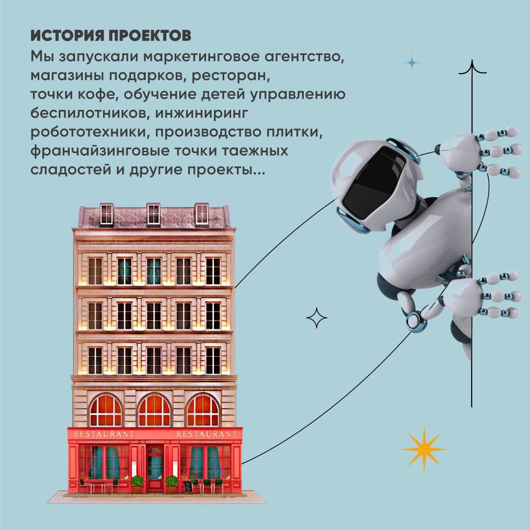 - IT стартапы (платформа Образовательный трекер для женщин WomanUP, LMS и платформы управления образовательным процессом Distant Global, ИИ помощник трекеру).