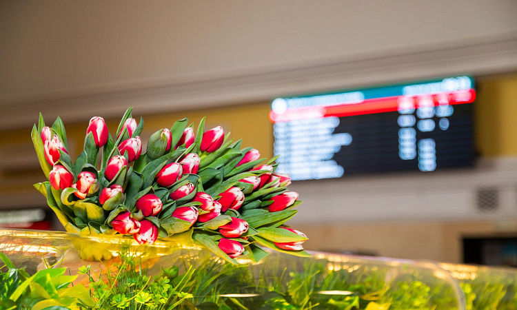 Молодые люди поздравили с Международным женским днем представительниц прекрасной половины человечества, отправляющихся в путешествие на поезде или возвращающихся из поездки. Они подарили пассажирам тюльпаны, которые ассоциируются с приходом весны.