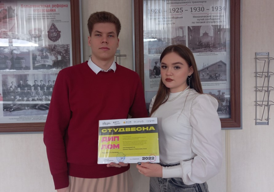 Диплом Лауреата 3 степени в номинации «Подкаст» - Николаева Анна гр. Д9-20-2 и Еремин Вадим гр. СОД.1-19-1.