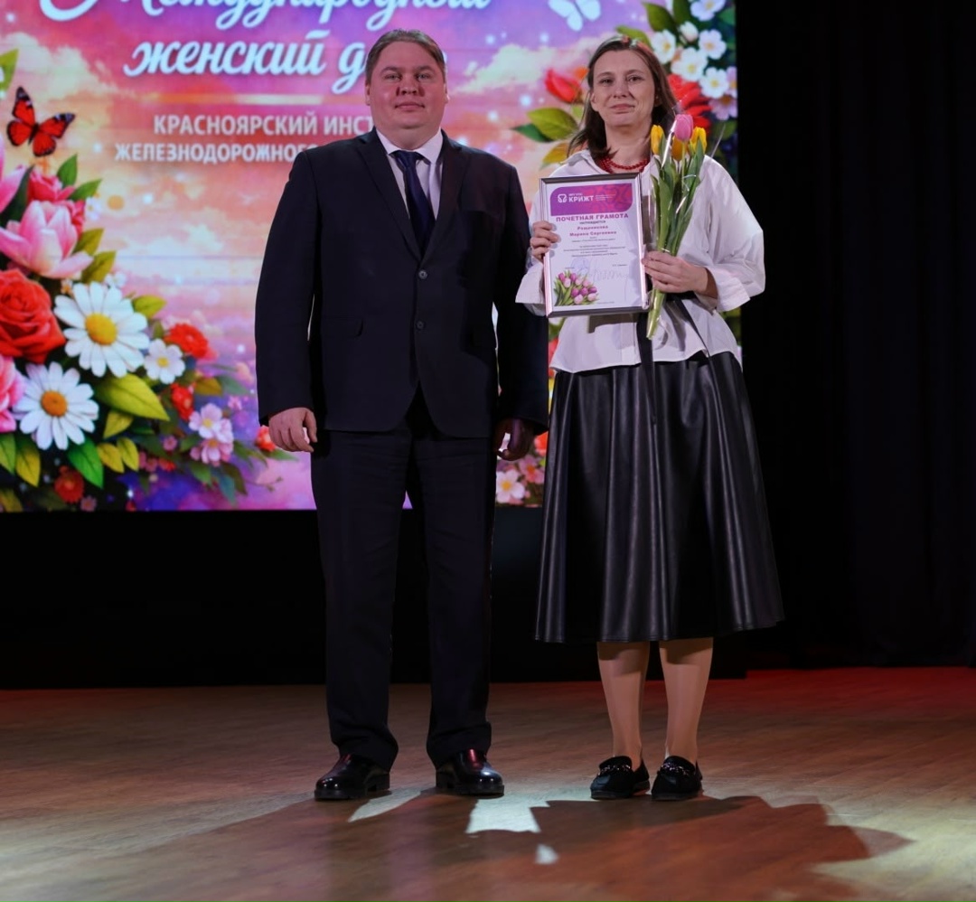 Торжественную часть мероприятия открыл заместитель директора по молодежной политике Михаил Кушков, обратившийся к прекрасной половине человечества с теплыми поздравлениями. Концертная программа также стала поводом для чествования лучших сотрудников института, чей профессионализм и вклад в развитие КрИЖТ были отмечены заслуженными наградами.