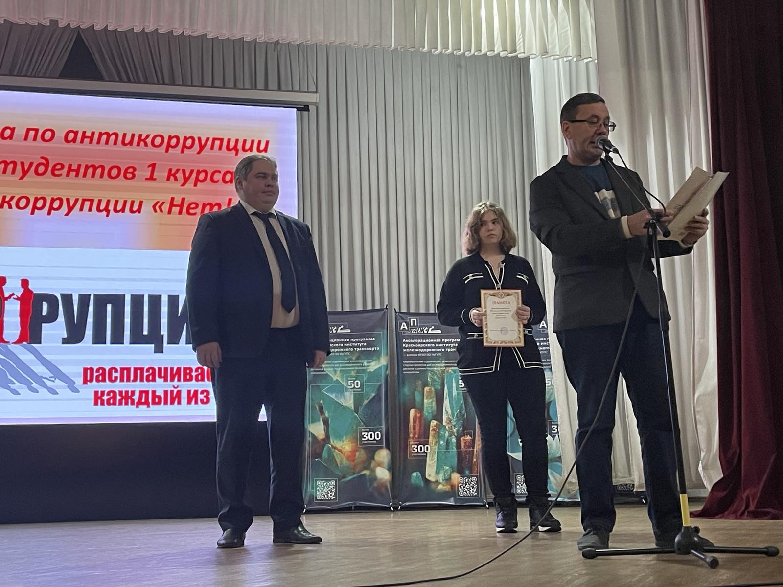Студенты 1 курса Красноярского техникума железнодорожного транспорта КрИЖТ ИрГУПС приняли участие с 1 - 8 декабря 2022 в «Викторине по антикоррупции» посвященой Международному деню борьбы с коррупцией — отмечается ежегодно 9 декабря 2004 года.