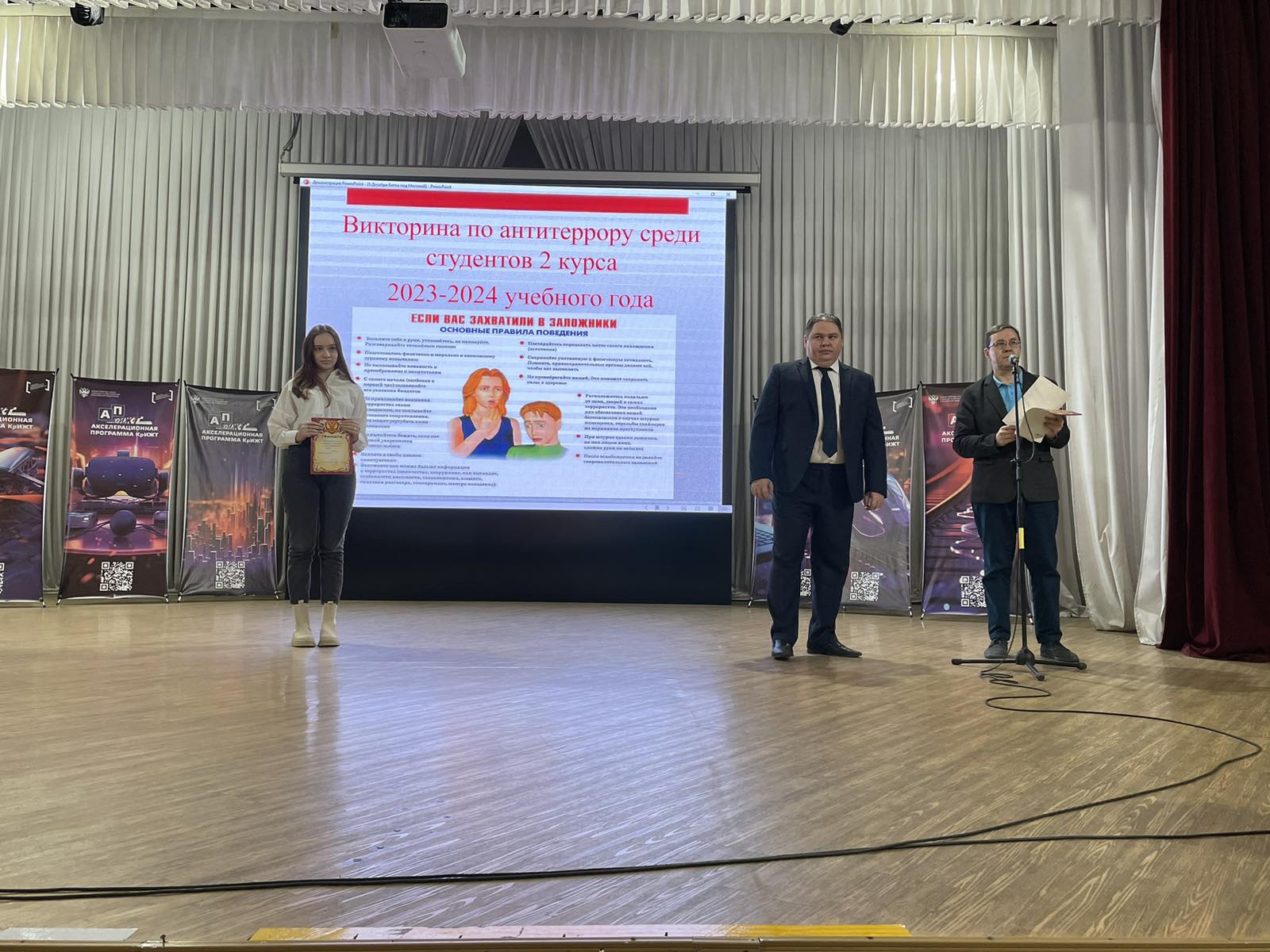 В КрИЖТ ИрГУПС прошла «Викторина по антитеррору» среди студентов 2 курса Красноярского техникума железнодорожного транспорта с 27 декабря по 2 декабря.