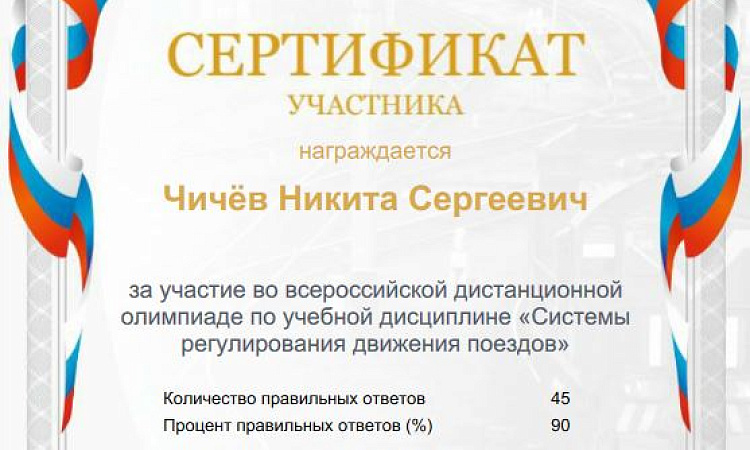 Всероссийская дистанционная олимпиада по учебной дисциплине «Системы регулирования движения поездов»