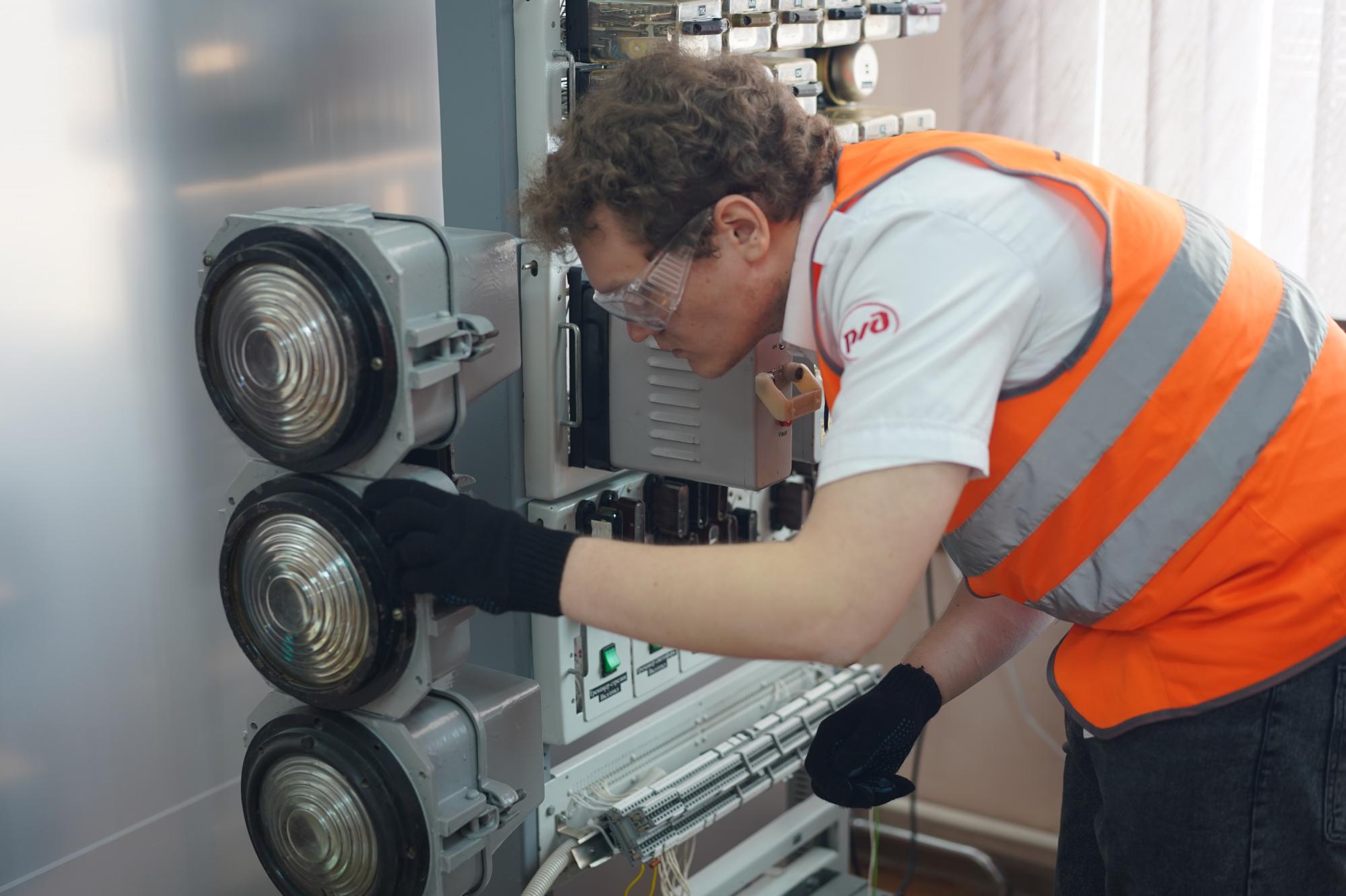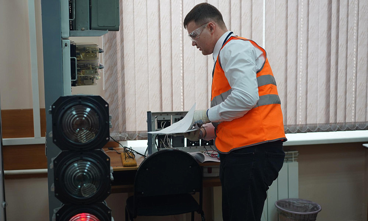 19 апреля в КрИЖТ ИрГУПС продолжились соревнования по компетенции «Обслуживание и ремонт устройств железнодорожной автоматики и телемеханики». Четыре участника второй группы выполняли задания в рамках конкурсных испытаний. За выполнением заданий наблюдали наставники и следили опытные эксперты – сотрудники Красноярской железной дороги Красноярской дирекции инфраструктуры.
