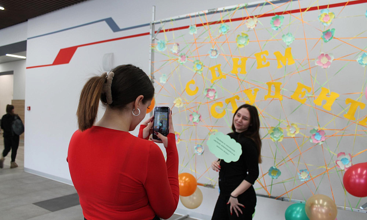 Для студентов КрИЖТ был подготовлен не только праздничный концерт с различными номерами и поздравлениями, но и оборудована специальная фотозона. В сопровождении музыки студенчества прошла акция «Лови момент», где обучающие должны были пройти небольшой тест и беспроигрышно получить приз!