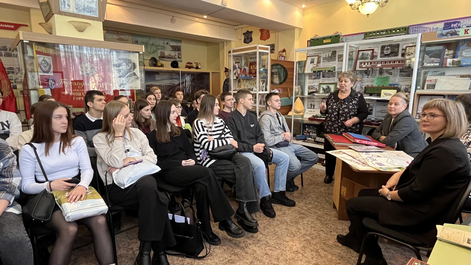 21 ноября в музее КрИЖТ ИрГУПС в рамках проведения недели специальности "Организация перевозок и управление на транспорте" на отделении ЭЖД проходила встреча студентов групп Д.9-22-2, Д.9-22-4 с выпускниками техникума доцентом КрИЖТ ИрГУПС Фуфачевой М.В, ведущим инженером по подготовке кадров Мех К.Б., начальником отдела автоматизации производственных процессов Лисовой С.В.