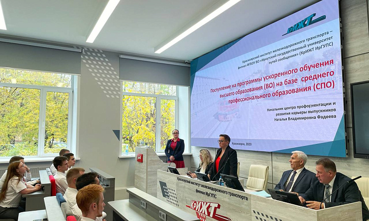 В ходе встречи выпускникам рассказали о возможности поступления на образовательные программы ВО на базе среднего-профессионального образования, о формах и сроках, о преимуществах ускоренного обучения. Колмаков О.В. рассказал о перспективах участия в реализации грантовых проектов, в Акселерационной программе технологического предпринимательства, о гарантии трудоустройства выпускников на предприятия ОАО «РЖД» и на предприятия реального сектора экономики.