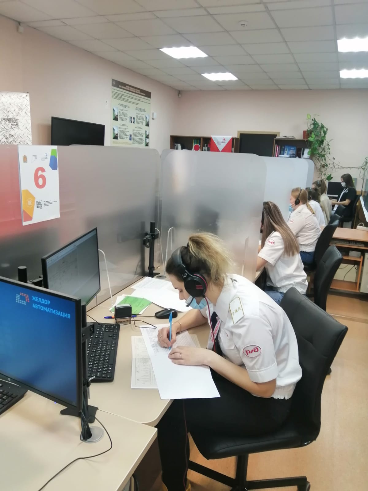 08.12.21 второй день соревнований IХ Открытого Регионального чемпионата профессионального мастерства «Молодые профессионалы» (WorldSkills Russia) Красноярского края. Сегодня на соревновательной площадке Регионального чемпионата по компетенции Т53 «Управление перевозочным процессом на железнодорожном транспорте» (возрастная категория 16-22 года) проходит выполнение конкурсного задания модуль С: «Выполнение работы дежурного по железнодорожной станции при нарушении нормальной работы устройств железнодорожного транспорта».