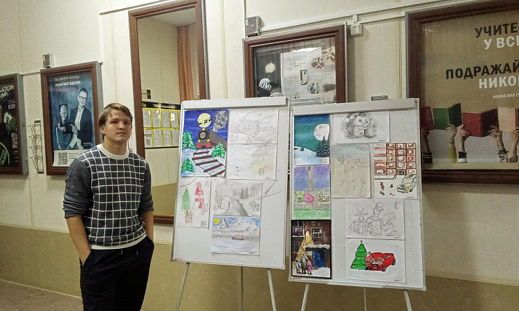 Студенты из психологического клуба «Своя тема!» Светлана Минченко (ЭТТ 4-24-1) и Измаил Лукьянов (ЭПСл 11-24-7) организовали выставку рисунков «Зимняя ассоциация».