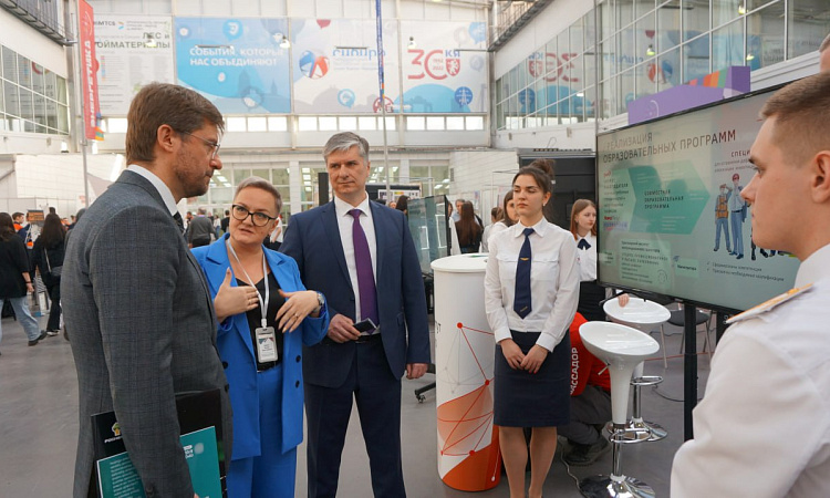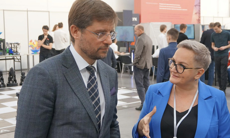 Выставочную площадку посетили заместитель председателя Правительства Красноярского края Алексей Михайлович Медведев и заместитель министра образования и науки Красноярского края Ольга Николаевна Никитина.