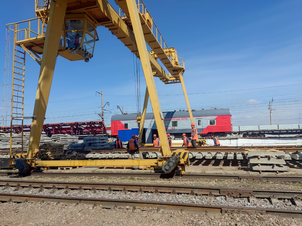 На экскурсии нам рассказали и продемонстрировали технику сборки рельсошпальной решетки. Мы на практике увидели, как работают машины УК/25, ВПО-3000 и другие.